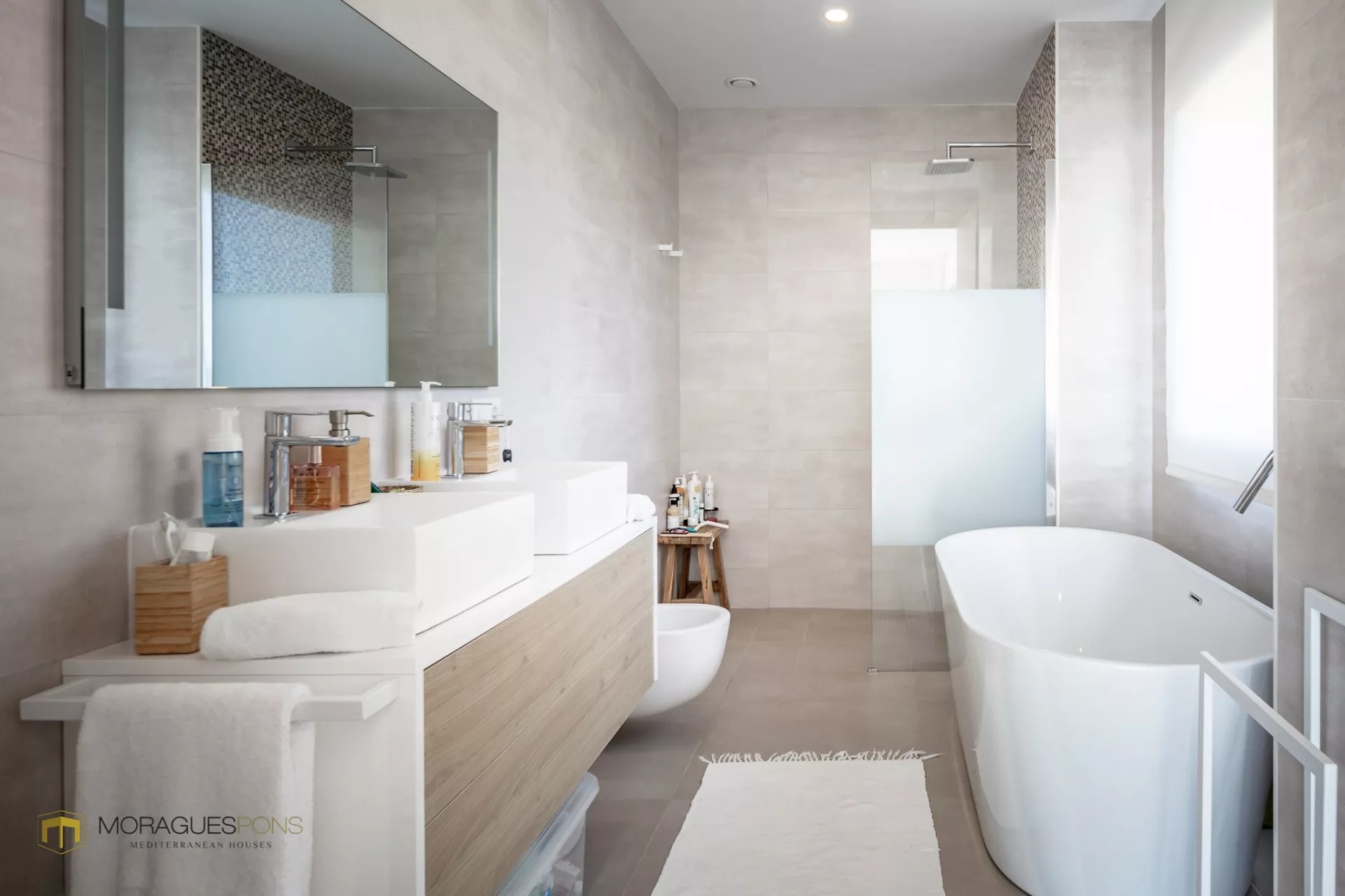 Die Immobilie verfügt über 4 geräumige Doppelschlafzimmer, jedes mit eigenem Bad, sowie ein Gäste-WC. Die geräumige und moderne, offene Küche wird durch eine praktische Waschküche ergänzt.