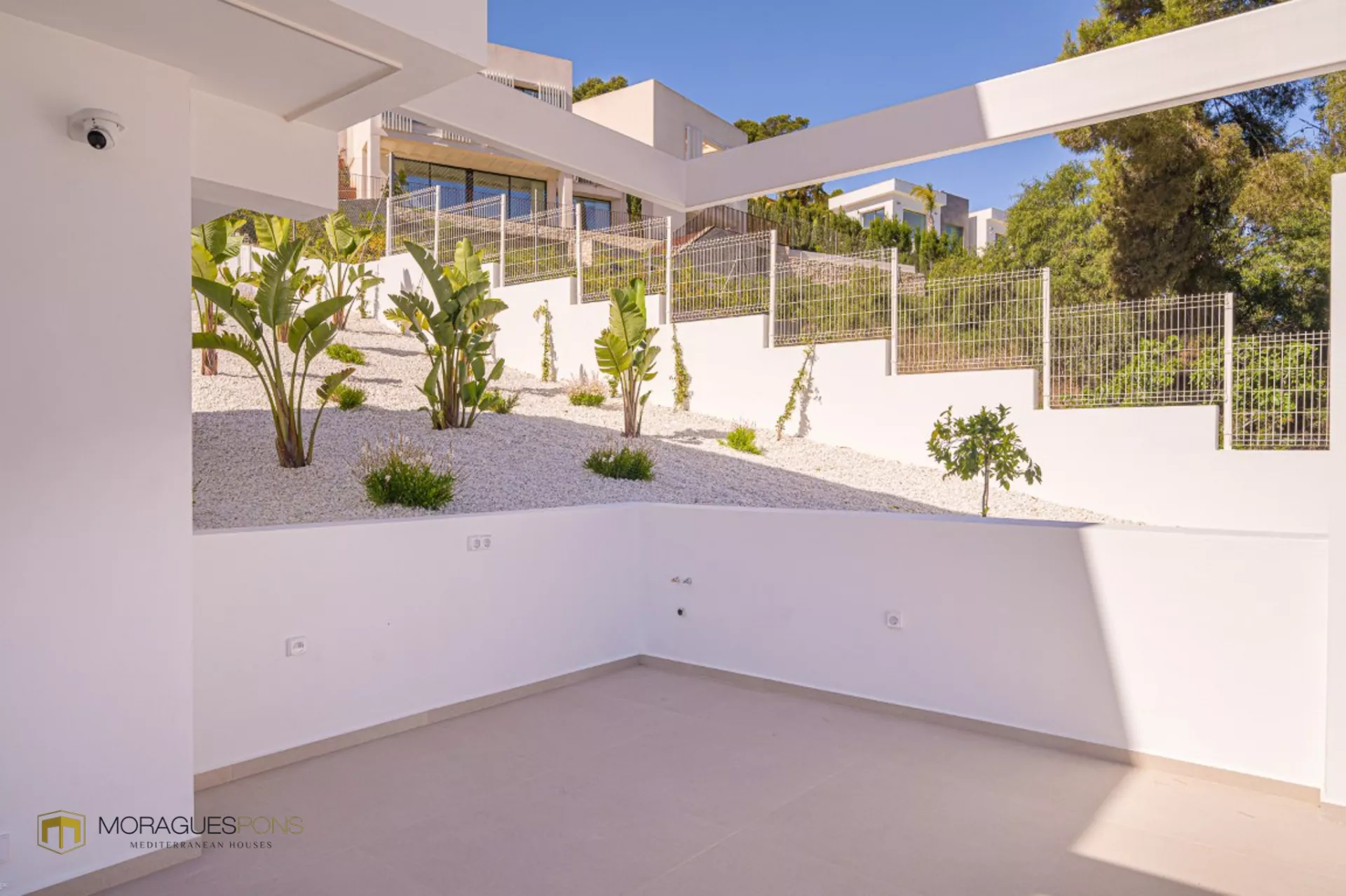 Die Villa ist von einem schönen mediterranen Garten umgeben, der leicht zu pflegen ist. Darüber hinaus gibt es eine sehr große Terrasse an der Vorderseite und an der Seite, von wo aus Sie einen schönen Blick auf das Meer von beiden haben. Auf der Terrasse finden Sie einen großen selbstreinigenden Salzwasser-Infinity-Pool und eine Außenküche. Eine bioklimatische Markise für die Außenküche und die Poolabdeckung ist bereits installiert.