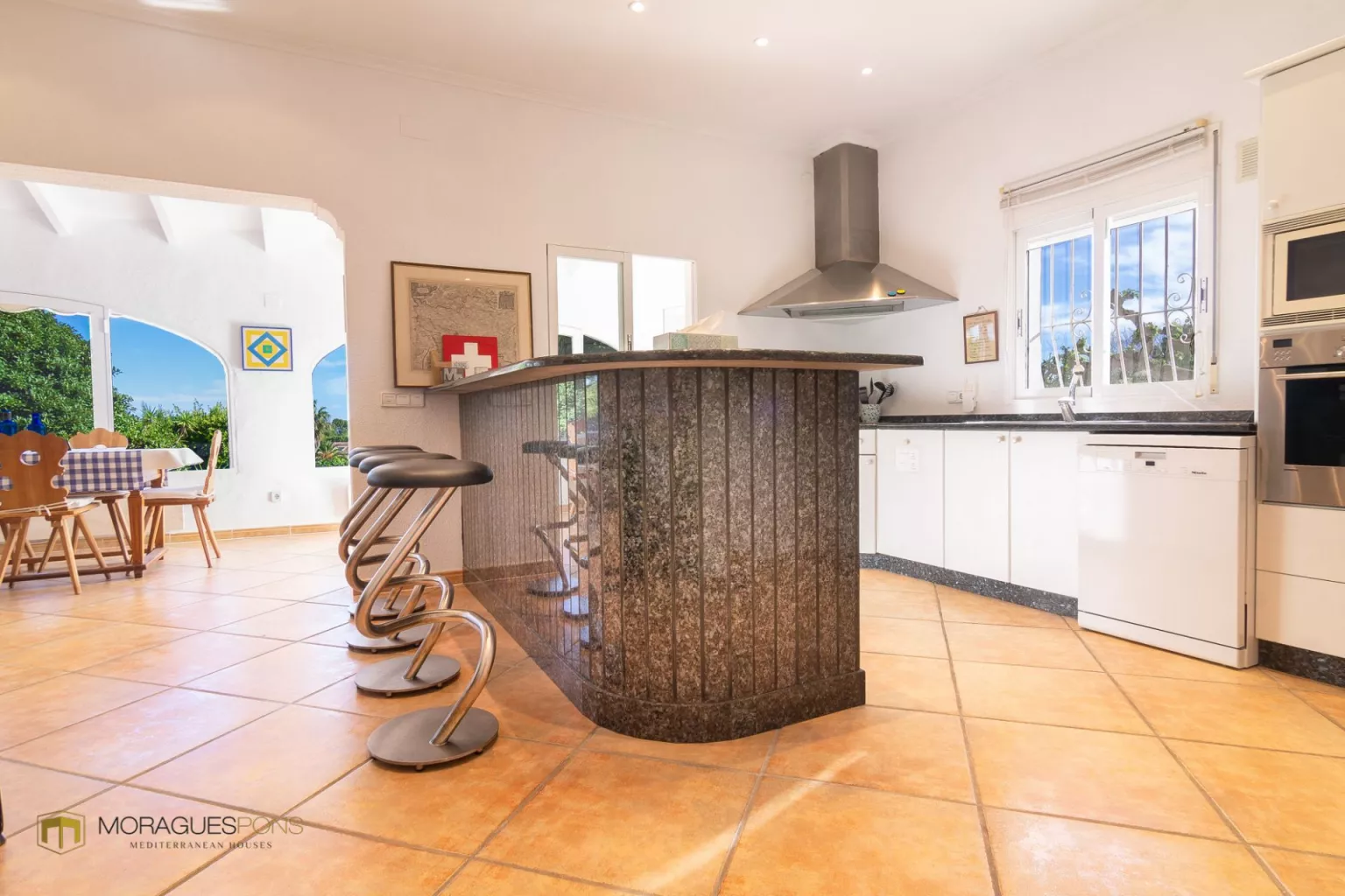 Diese wunderbare Villa erhebt sich majestätisch, um den Blick auf das Meer und das Kap von San Antonio mit seiner imposanten Spitze schweifen zu lassen. Der wunderbare Garten, der von einem natürlichen Brunnen bewässert wird, bietet uns genügend Platz, um das herrliche Klima von Jávea zu genießen. Das Haupthaus verfügt über mehrere Lounges, einen Wellnessbereich mit beheiztem Innenpool und eine wunderschöne Aussicht.