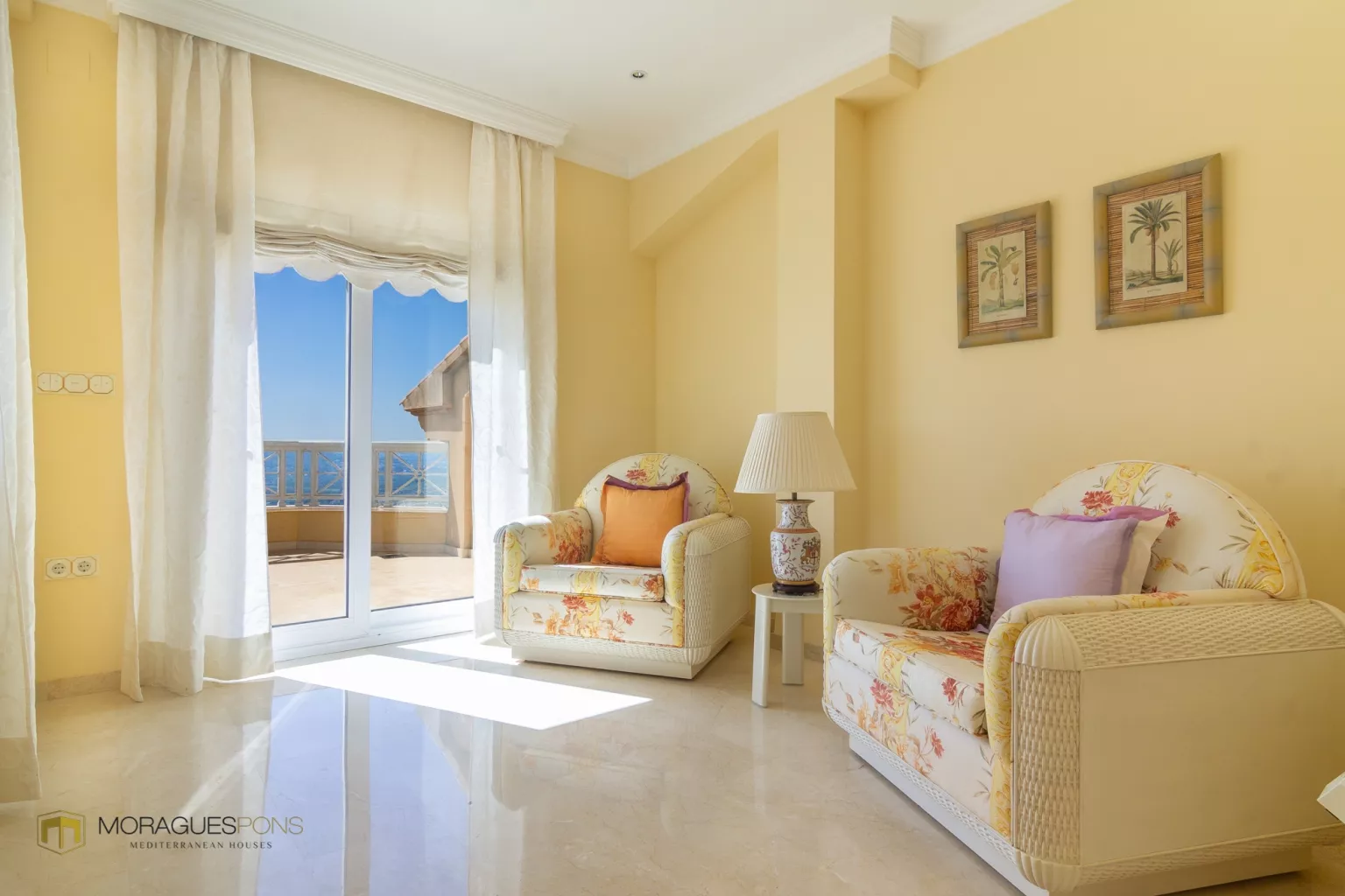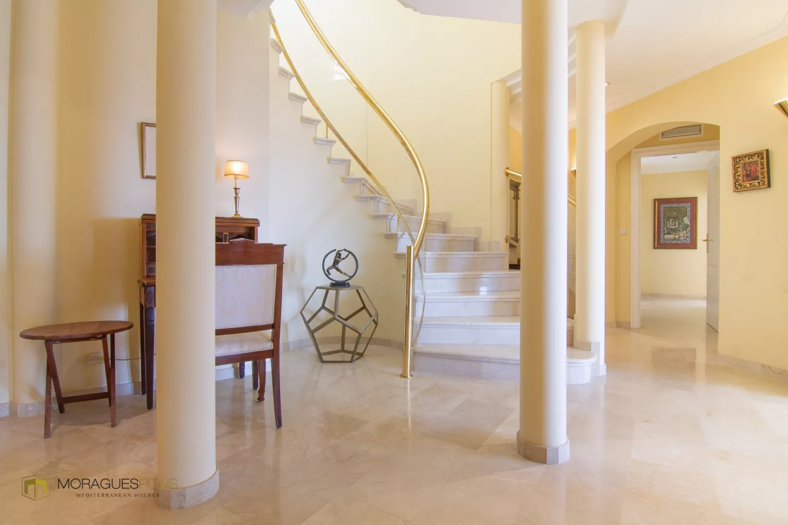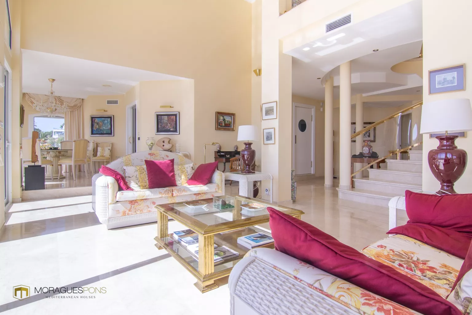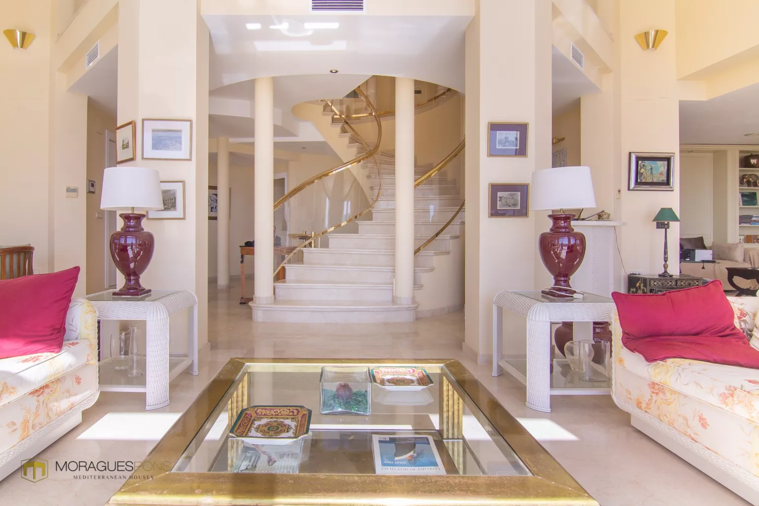 Der Aufenthalt hier ist eine Oase der Ruhe, da Sie praktisch von jedem Zimmer aus das blaue Meer genießen können. Auf drei Ebenen können Sie abschalten, Musik hören, ein Buch lesen oder sich einfach nur in Ihrem eigenen Haus verlieren, allein oder in Gesellschaft. Das Hauptgeschoss mit seinen hohen Decken, den zum Meer hin offenen Zimmern, der Küche und dem Esszimmer bildet einen praktisch durchsichtigen Raum mit einem frischen mediterranen Touch. Aber warten Sie, wenn Sie ein paar Stufen hinuntergehen, werden Sie im Schlafbereich Ihren besonderen spirituellen Rückzugsort entdecken, ja, den Ort, an dem jeder Sonnenaufgang, jeder erste Sonnenstrahl Sie vergessen lässt, woran Sie nicht zu denken brauchen.