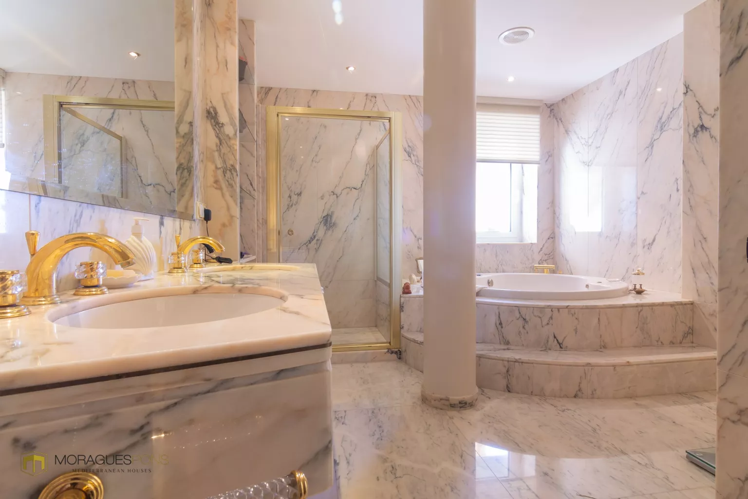 Das Haus ist mit den luxuriösesten Materialien gebaut. Marmor findet sich in allen Räumen und sogar im Außenbereich.