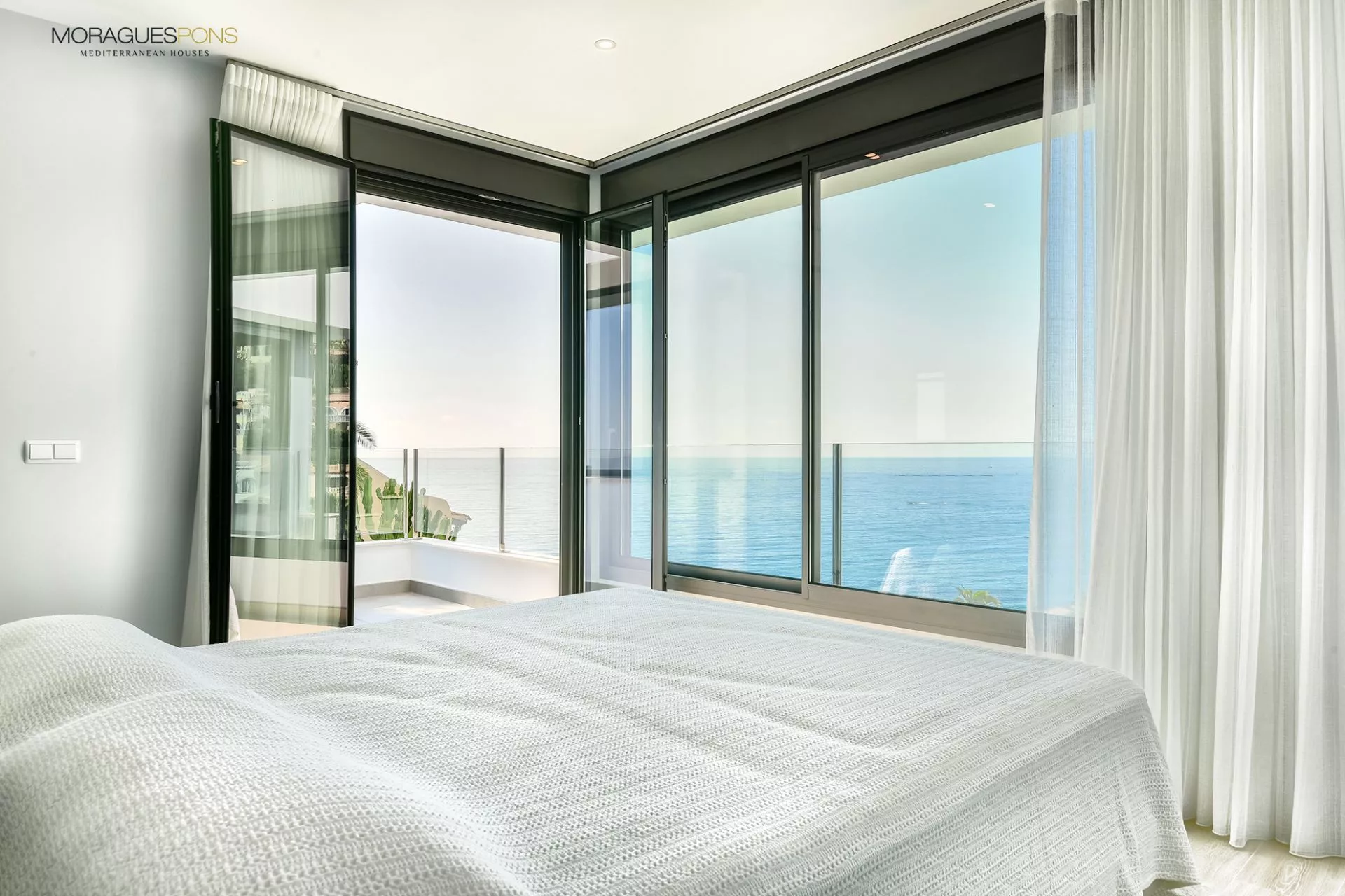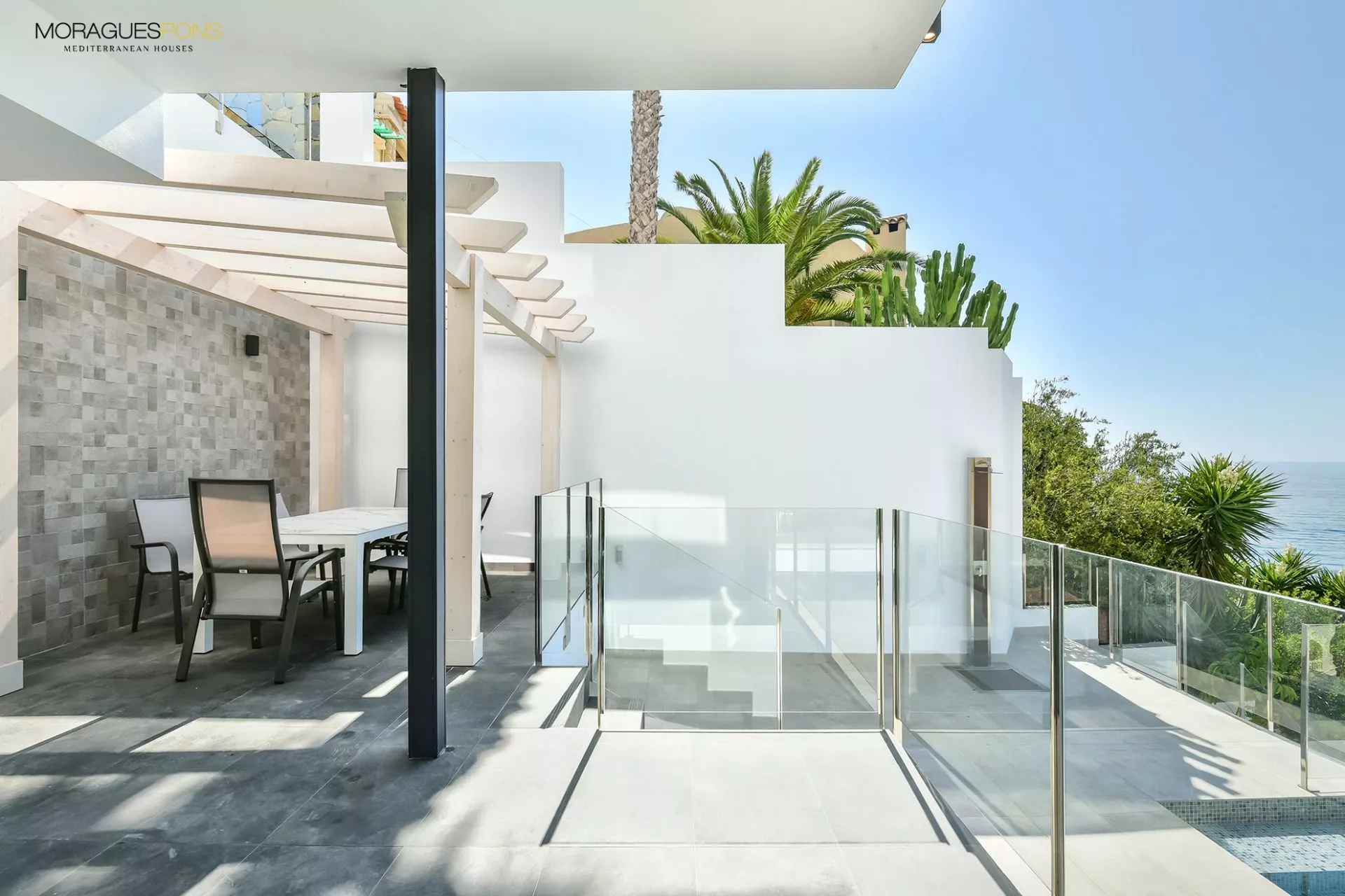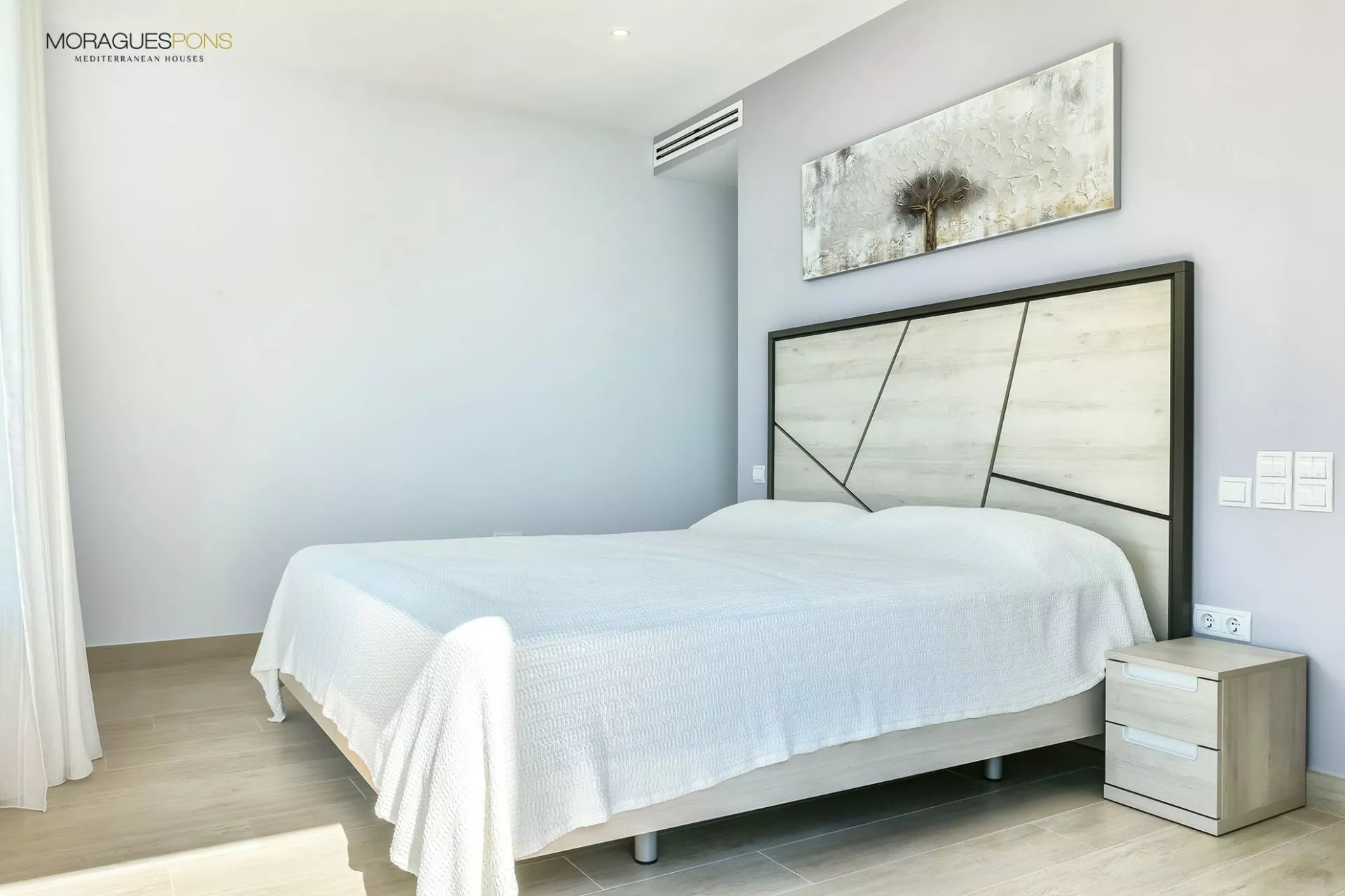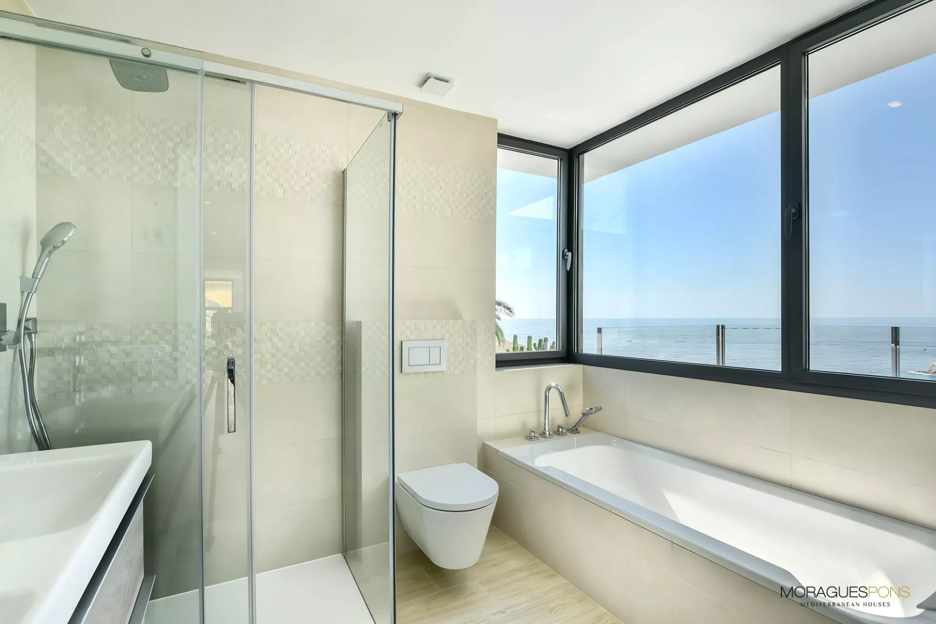 Kühl, ruhig und raffiniert mit einem jugendlichen Touch, ist dieses funktionelle Haus in Licht und Komfort gehüllt. Weiße Wände, Porzellanböden und hohe Decken schaffen einen Stil, der so zeitlos ist wie der brillante Blick aufs Meer. Der entspannende Blick aufs Meer, eingefangen durch die ausgiebige Verwendung von Glas, wird Ihnen helfen, den Stress Ihrer Stadt zu vergessen.