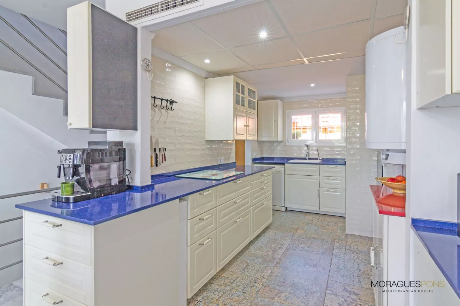 Es ist schwierig, in Jávea zu leben und nicht jeden Tag das Meer zu sehen, aber in diesem Stadthaus zu wohnen ist eine andere Ebene. Es ist ein Eintauchen in das Mittelmeer, das Sie beim Gang durch das Haus begleitet. Man genießt dieses intensive Blau vom Wohnzimmer oder den Schlafzimmern aus und vor allem von der Terrasse aus, die mit einer Küche und einem Kühlschrank ausgestattet ist, so dass man sich nicht von dort wegbewegen muss, um ein kühles Bier oder einen Snack zu holen. Sie werden sich umgeben fühlen und die Meeresluft einatmen, das Salz riechen, den Klang der Möwen hören und den salzigen Geschmack am Gaumen schmecken. Totales Eintauchen.