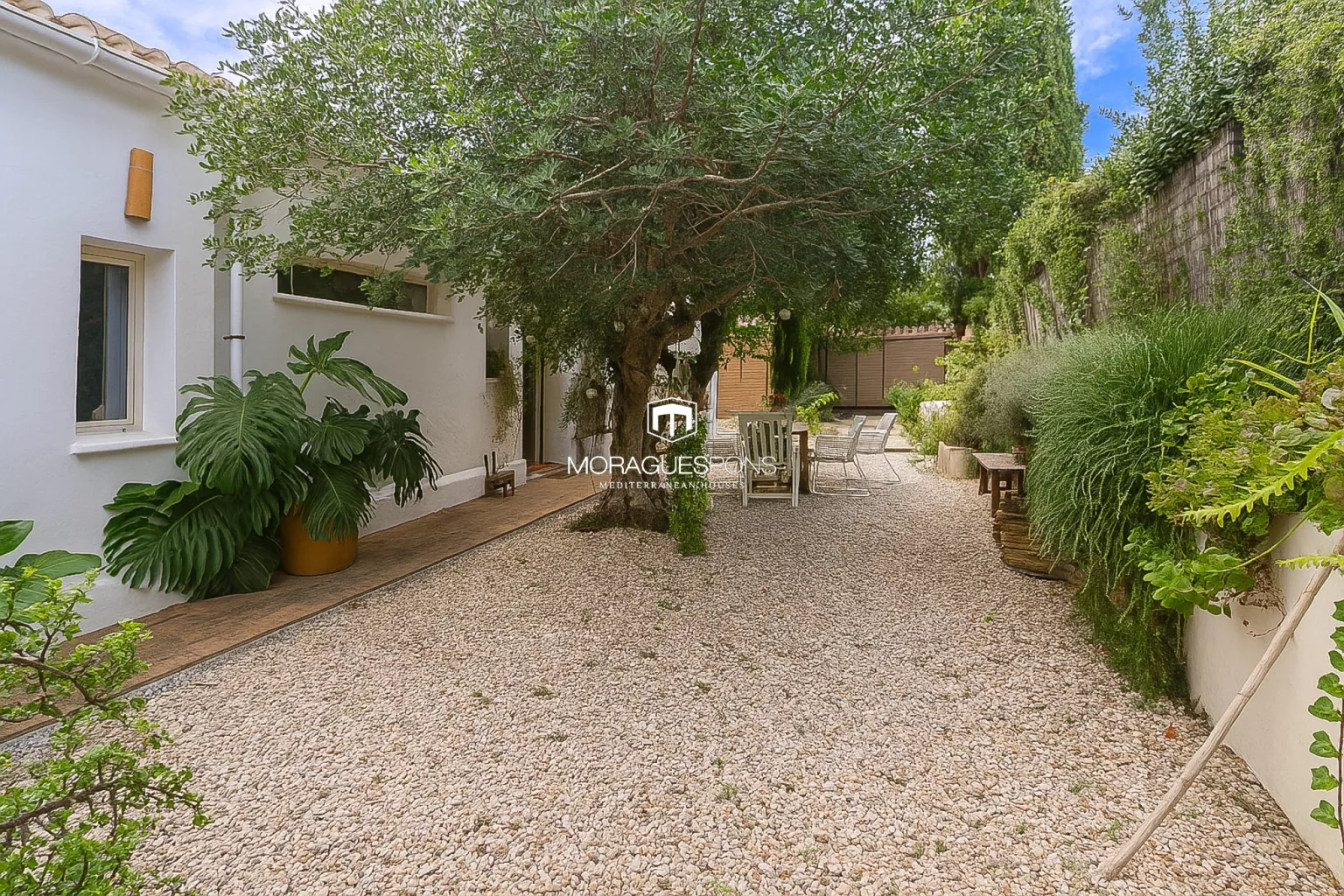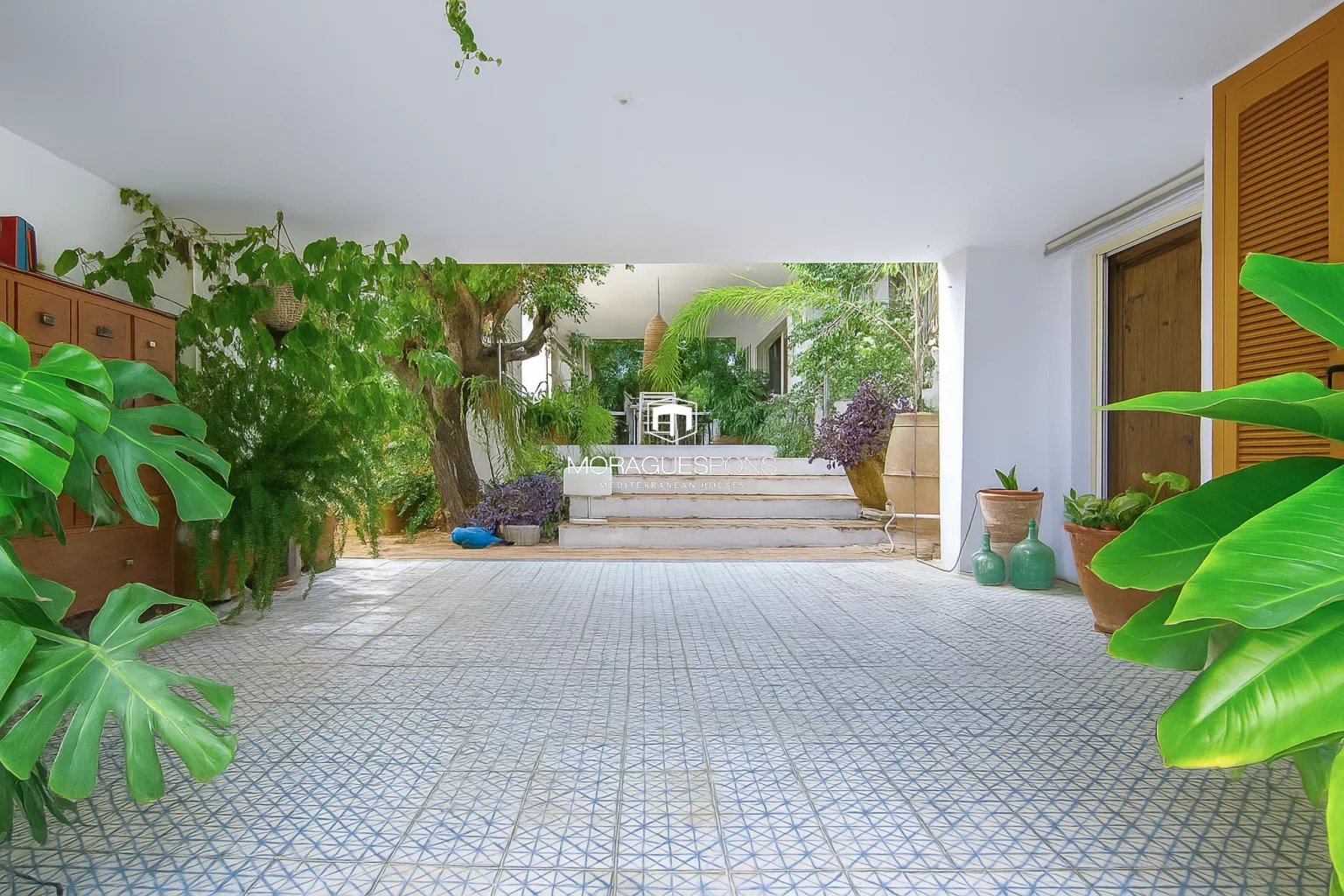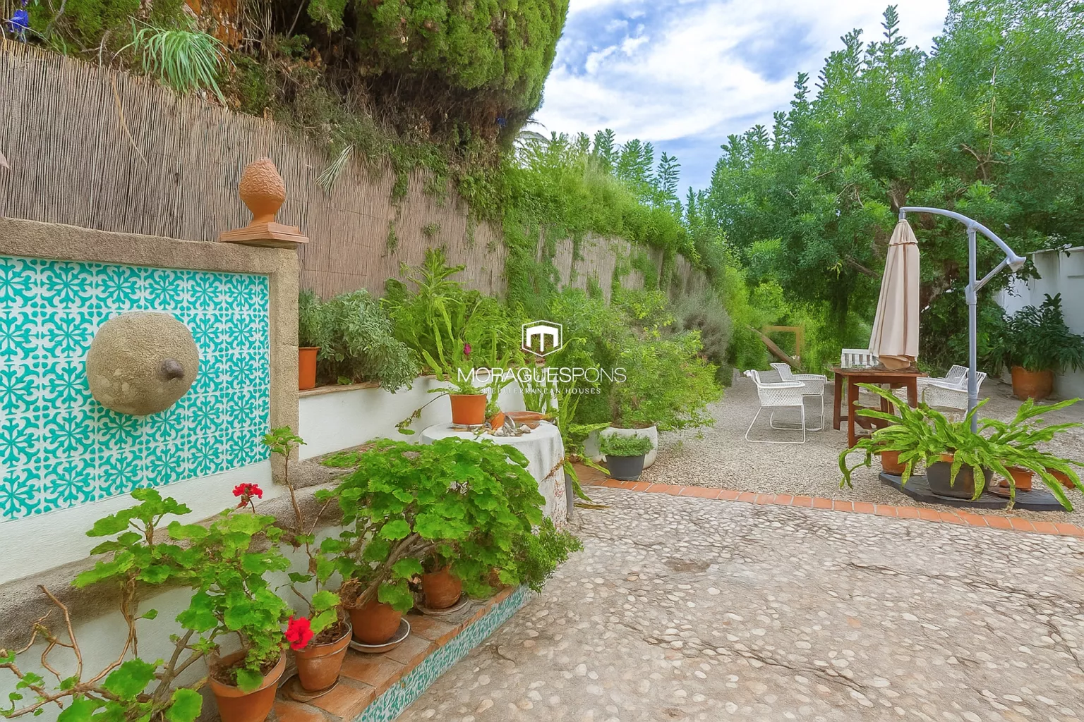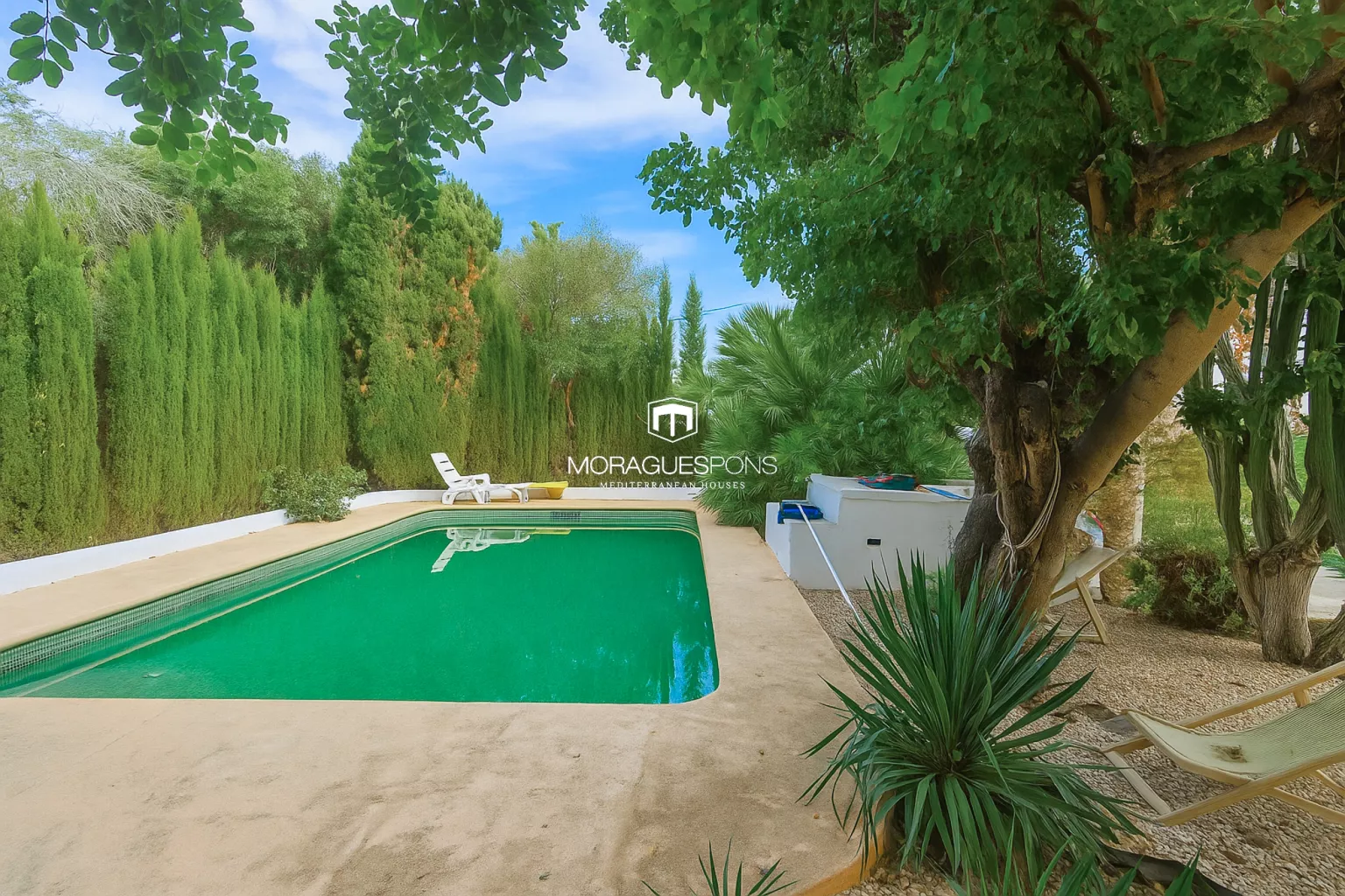 Auf einem Grundstück von 1.700 m² bietet das Anwesen absolute Privatsphäre, dank dichter Zypressenhecken und eines gewachsenen Gartens mit jahrhundertealten Johannisbrotbäumen, Obstbäumen und bunten Pflanzen. Im Herzen des Gartens liegt ein grün gefliestes Schwimmbad, das sich harmonisch in die Umgebung einfügt – eine Oase der Ruhe.