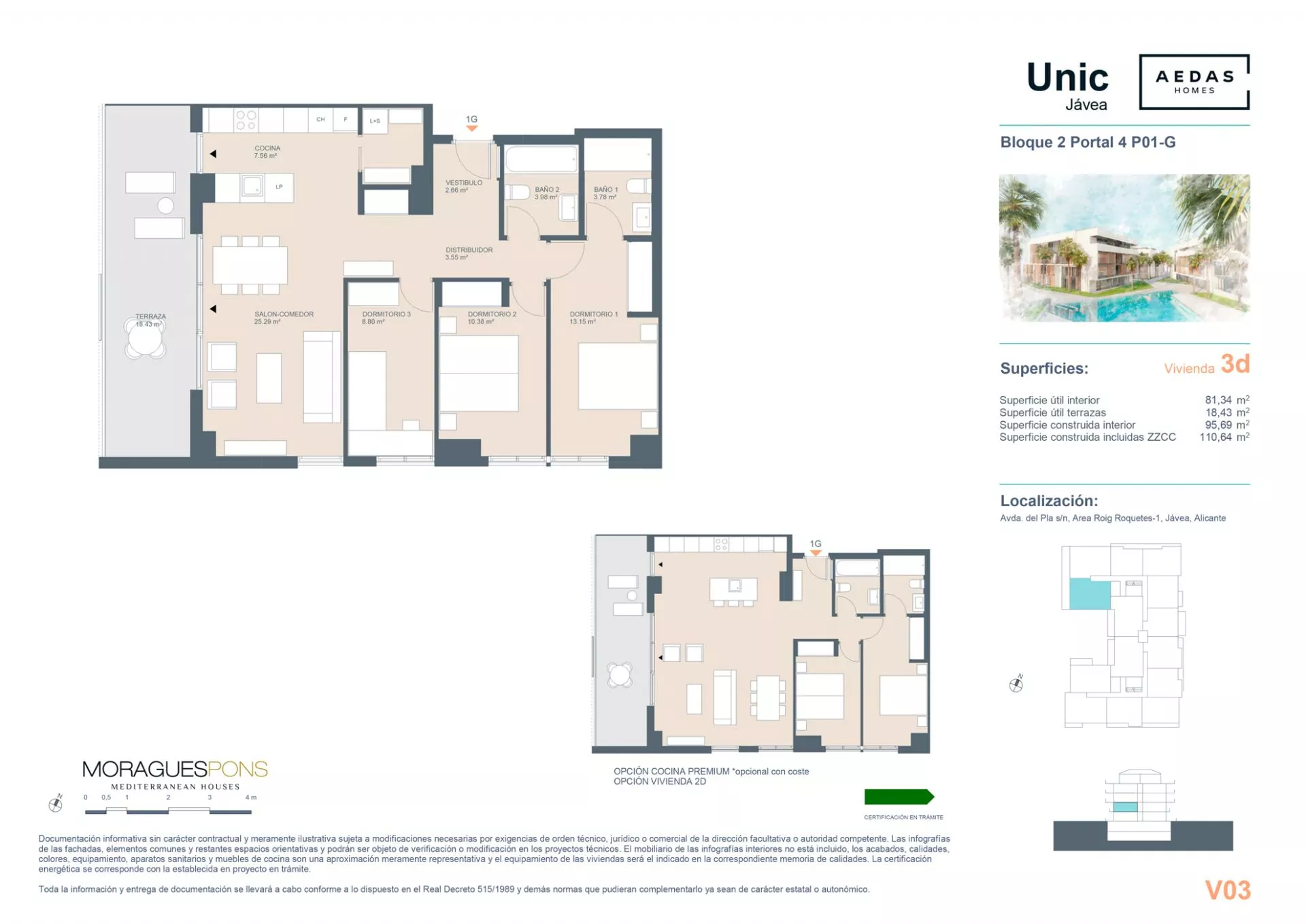 UNIC Javea besteht aus 58 Wohnungen mit 2, 3 und 4 Schlafzimmern, die sich im Erdgeschoss befinden und einen Garten haben. Es umfasst Penthäuser und Maisonette-Wohnungen mit großen Terrassen. Darüber hinaus werden alle Wohnungen über Parkplätze und Abstellräume verfügen. Die Wohnanlage wird über ein Schwimmbad und einen Sozialclub verfügen.