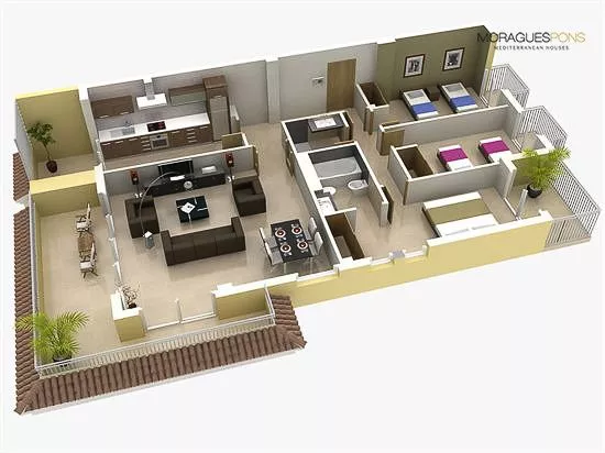 - Eckwohnung, 3 Richtungen, außen, mit Balkonen in jedem seiner Zimmer und großer Terrasse im Wohnzimmer.