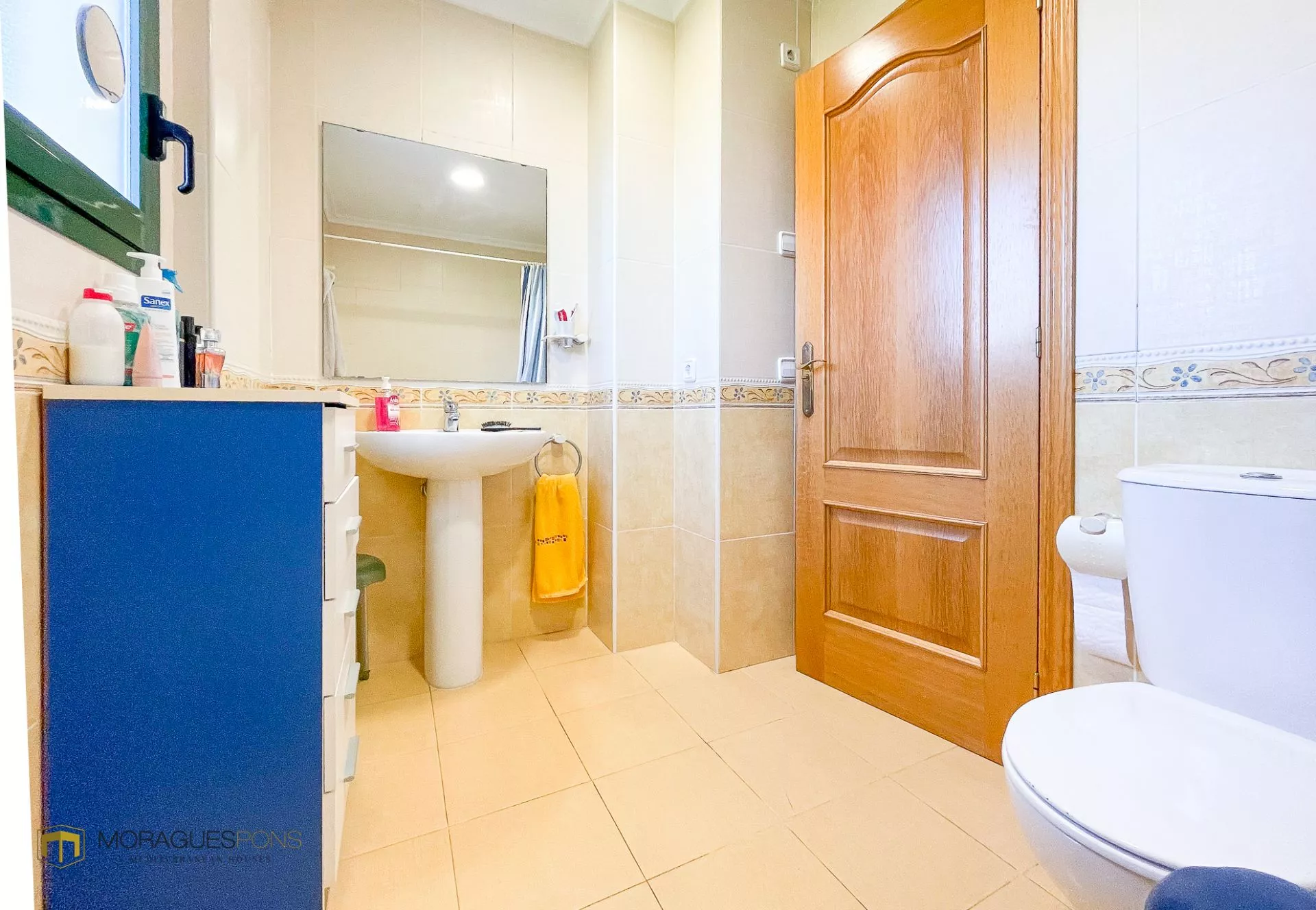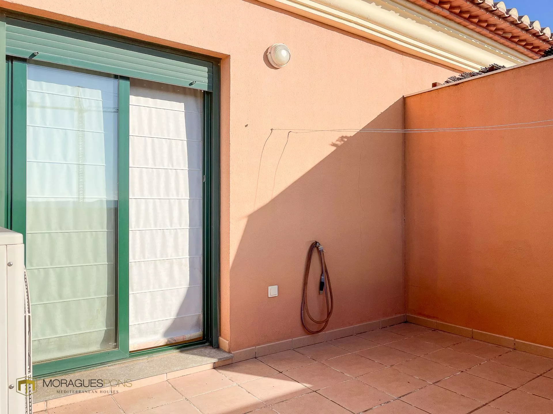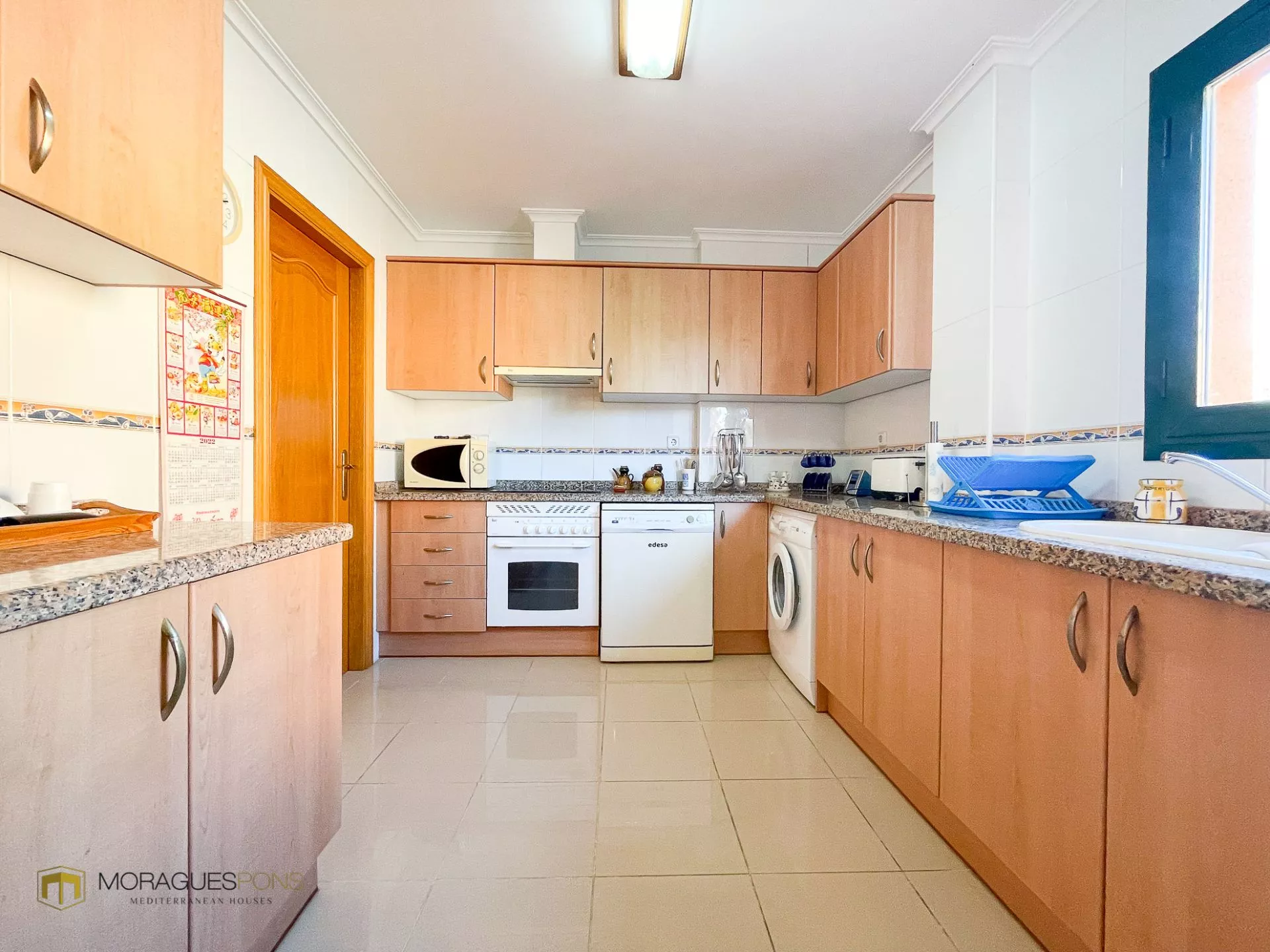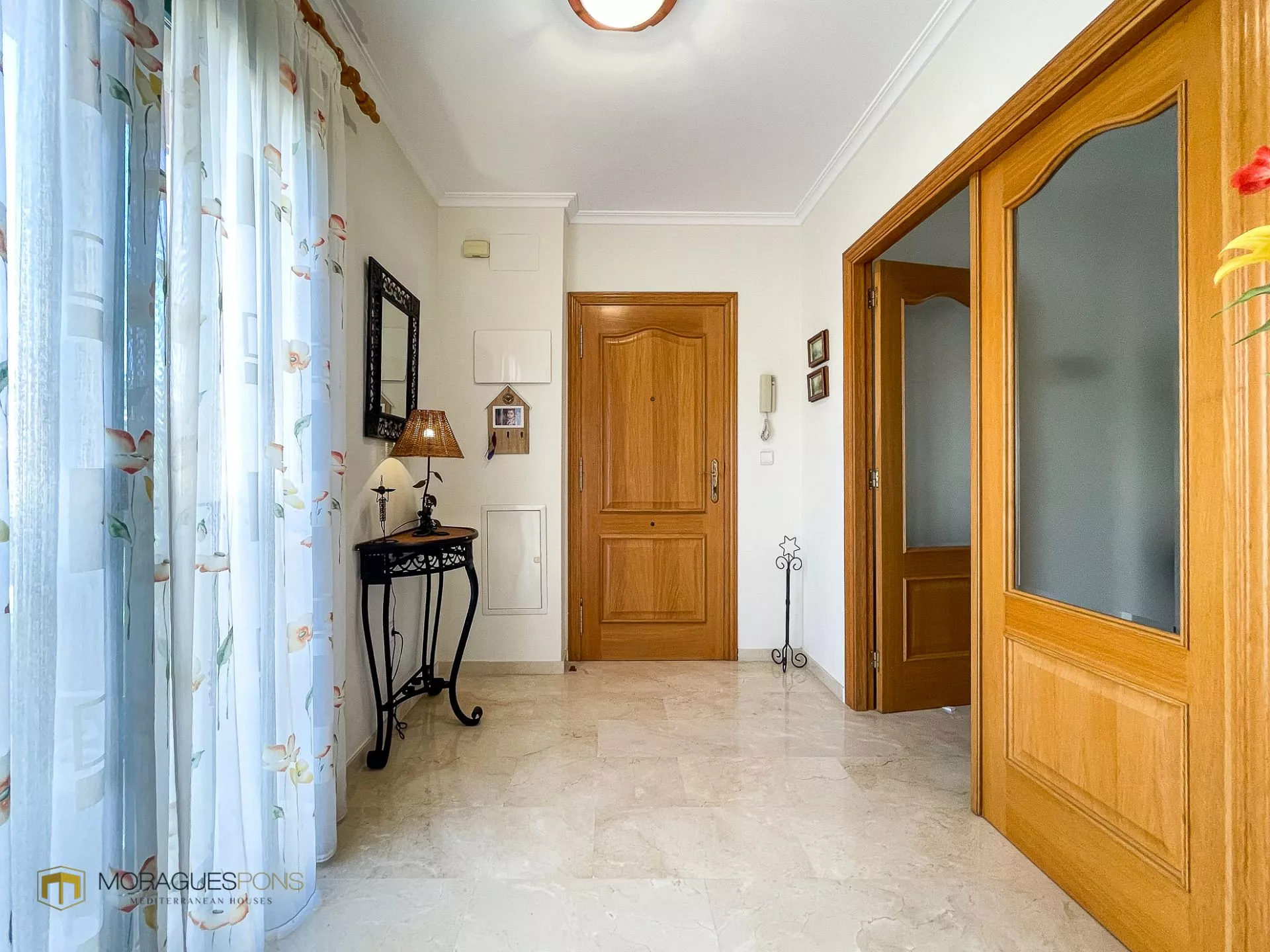 Two-bedroom, two-bathroom penthouse flat in a residential area just a few minutes' walk from the beach. It has underfloor heating, split air conditioning in all rooms. One of the bedrooms is on the main floor of the property and the other with its bathroom and dressing room on the top floor which also has a private terrace for this room. Large kitchen with pantry with access from the entrance hall. All facing south, west and north, as it is a property located in the corner of the block.