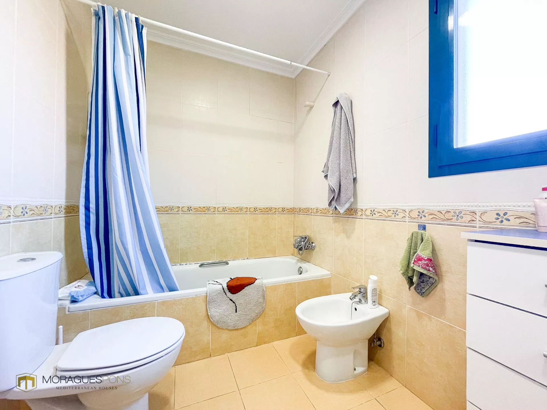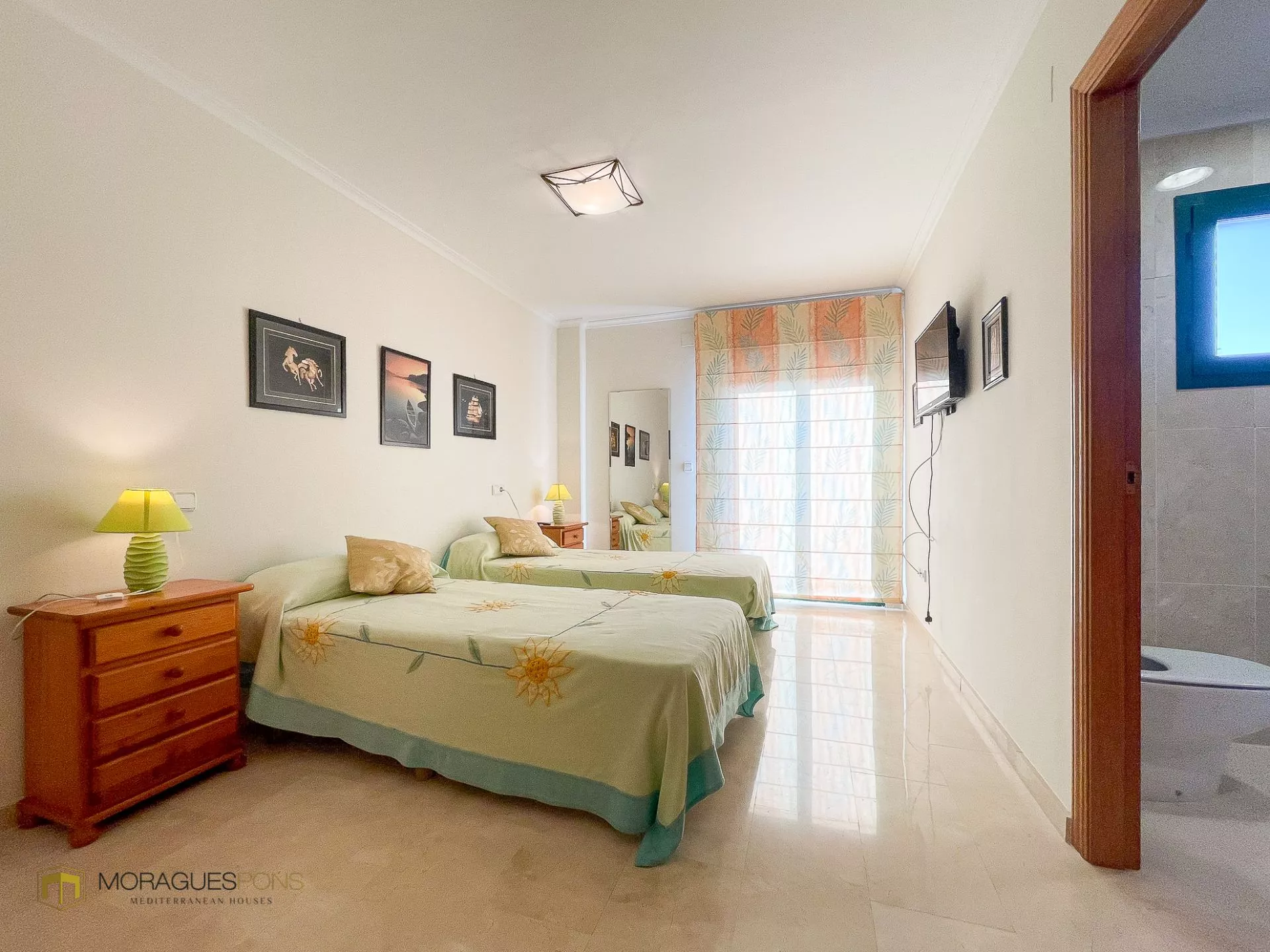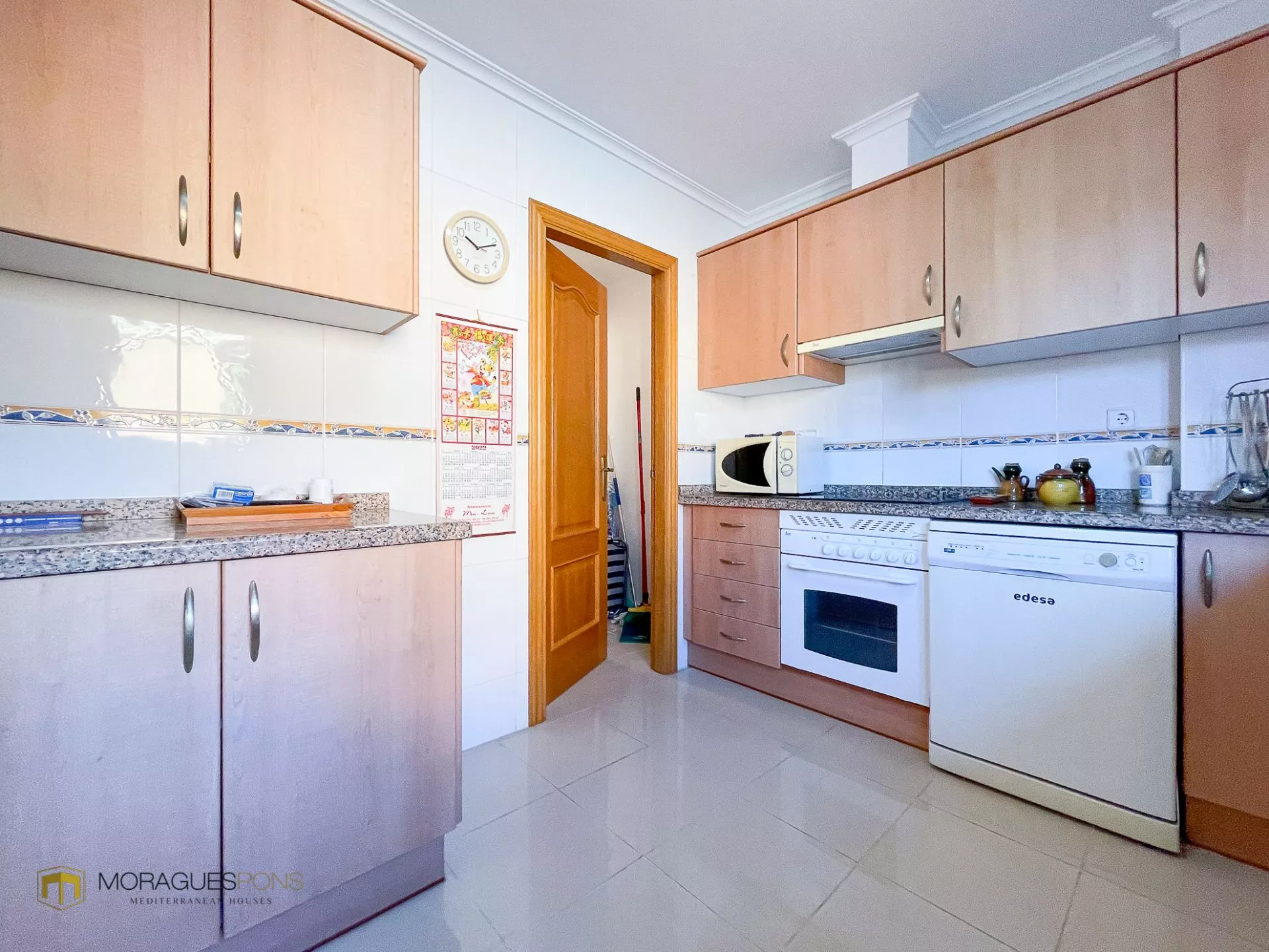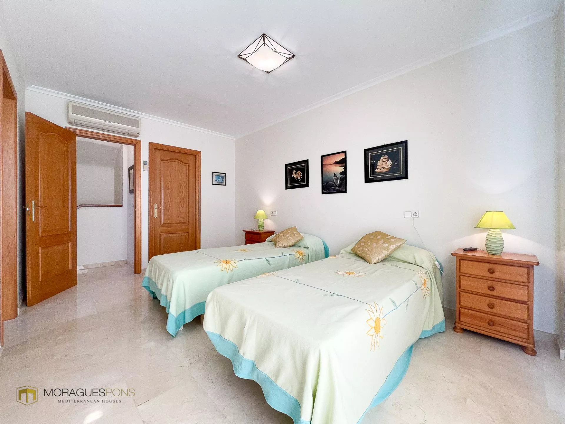 Two-bedroom, two-bathroom penthouse flat in a residential area just a few minutes' walk from the beach. It has underfloor heating, split air conditioning in all rooms. One of the bedrooms is on the main floor of the property and the other with its bathroom and dressing room on the top floor which also has a private terrace for this room. Large kitchen with pantry with access from the entrance hall. All facing south, west and north, as it is a property located in the corner of the block.