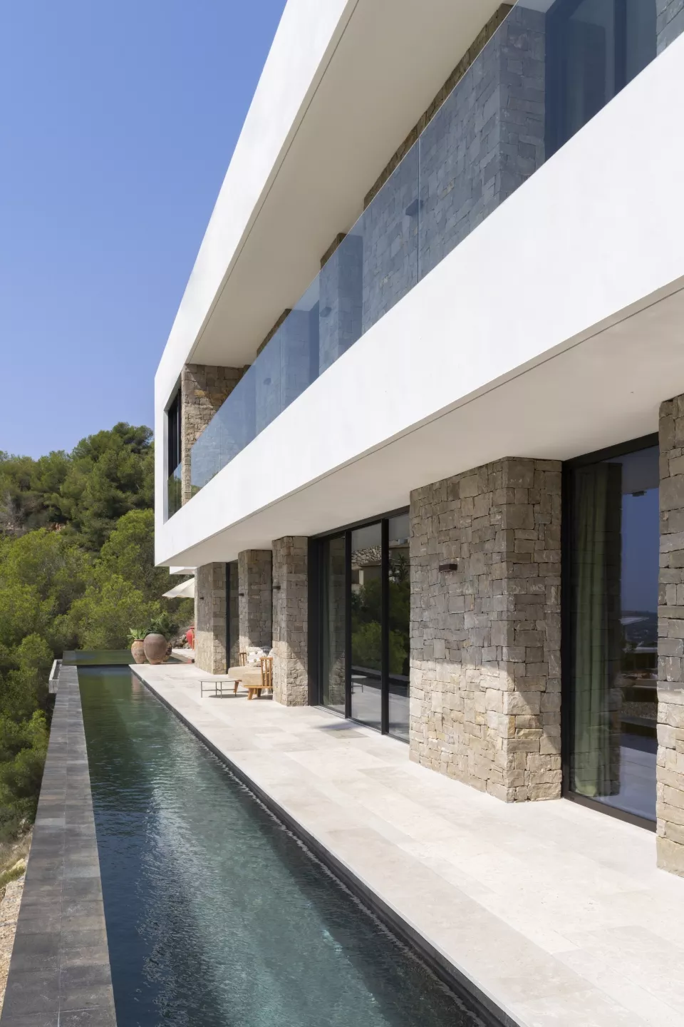 Ca Malva pertenece a las segundas. Suspendida en lo alto de la montaña, en el punto más privilegiado de Jardí d’Olivella, esta villa nace de la piedra y mira al Mediterráneo con la serenidad de quien ha encontrado su lugar.