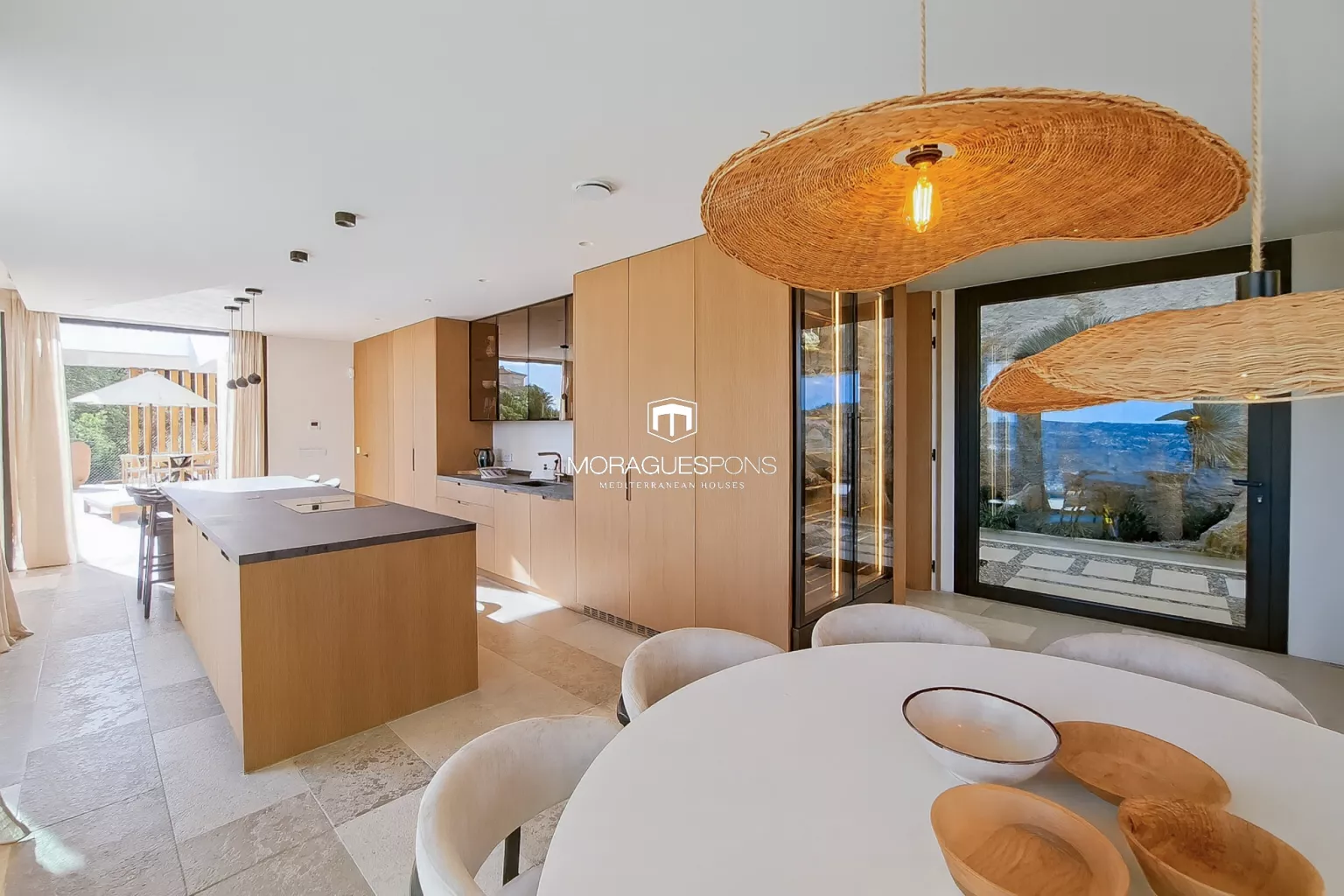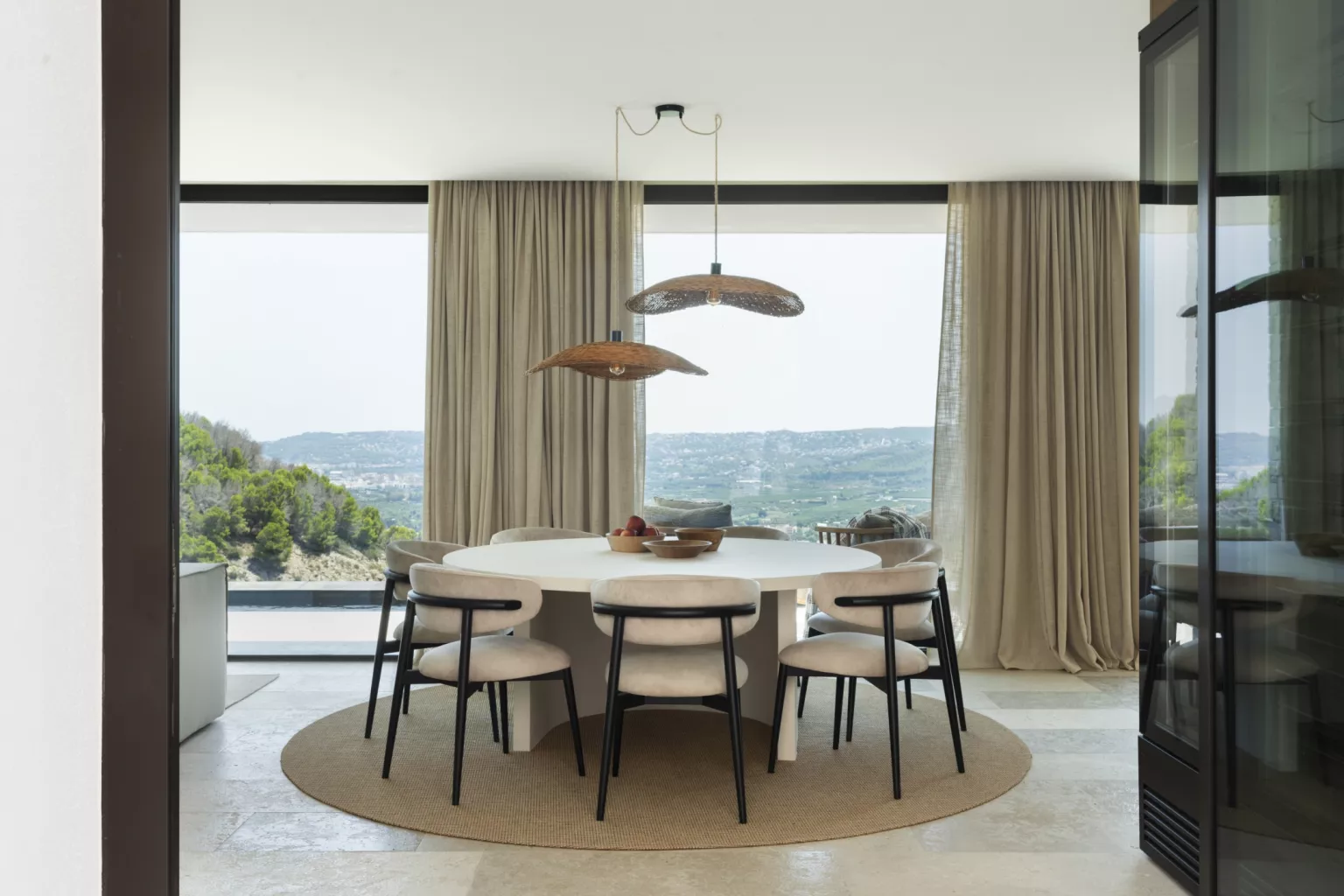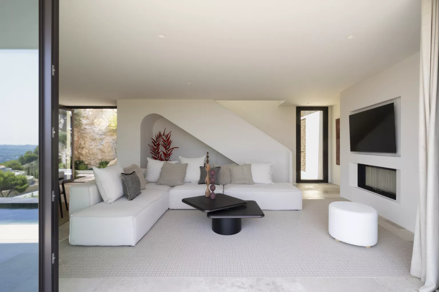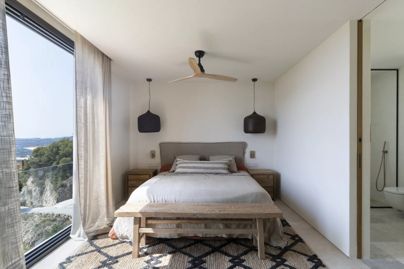 Desde sus terrazas, el horizonte se abre hacia el Calvario, el Monte de Santa Lucía y el Montgó, donde el verde de los bosques se funde con el azul infinito del cielo y del mar. La montaña, justo enfrente, se integra en el jardín, creando una sensación de privacidad total y de conexión con la naturaleza.