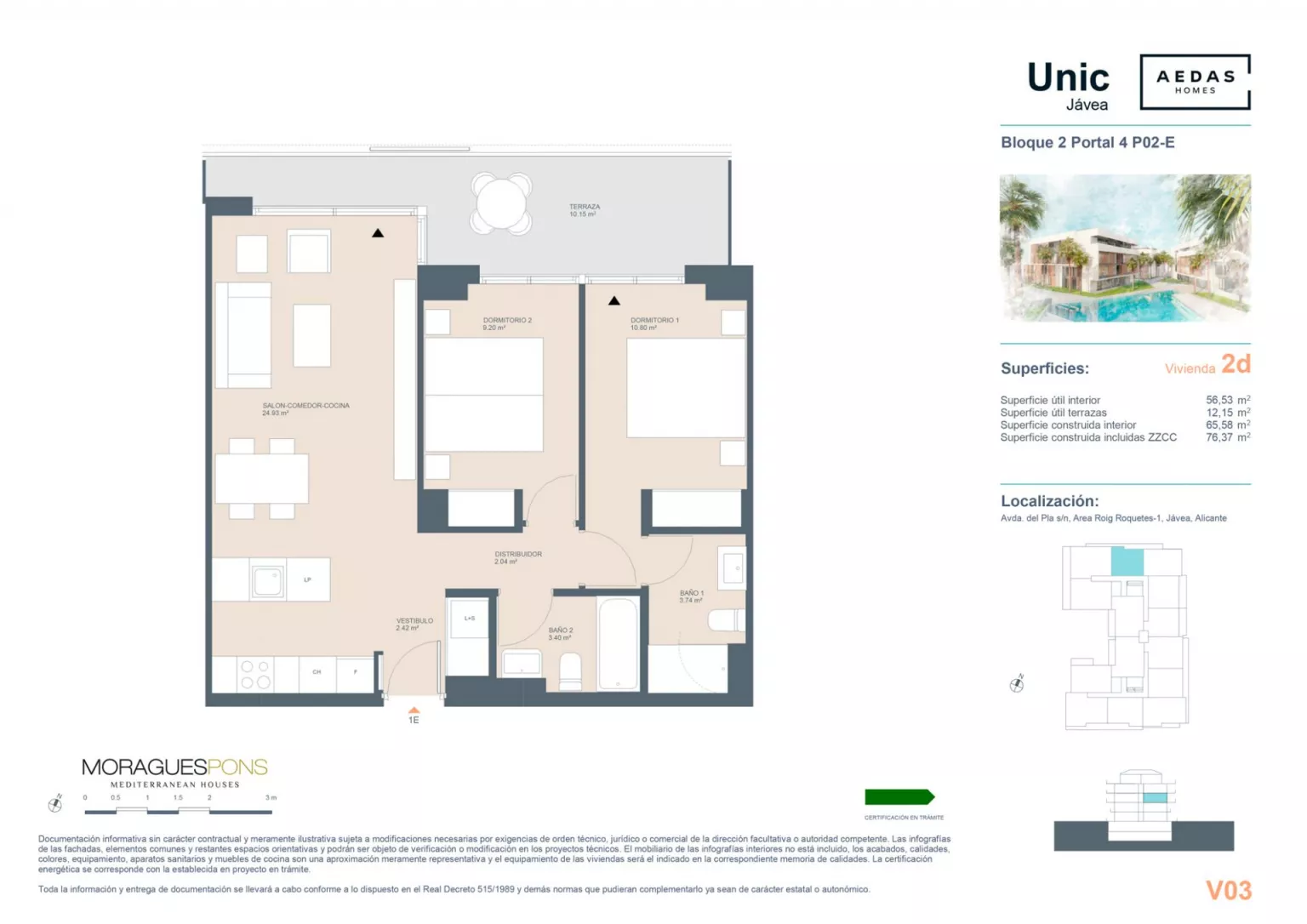 UNIC Javea, consists of 58 homes of 2, 3 and 4 bedrooms distributed on the first floor with garden. It includes penthouses and duplexes with large terraces. In addition, all homes will have a parking space and storage room. The residential complex will have a swimming pool and social club.