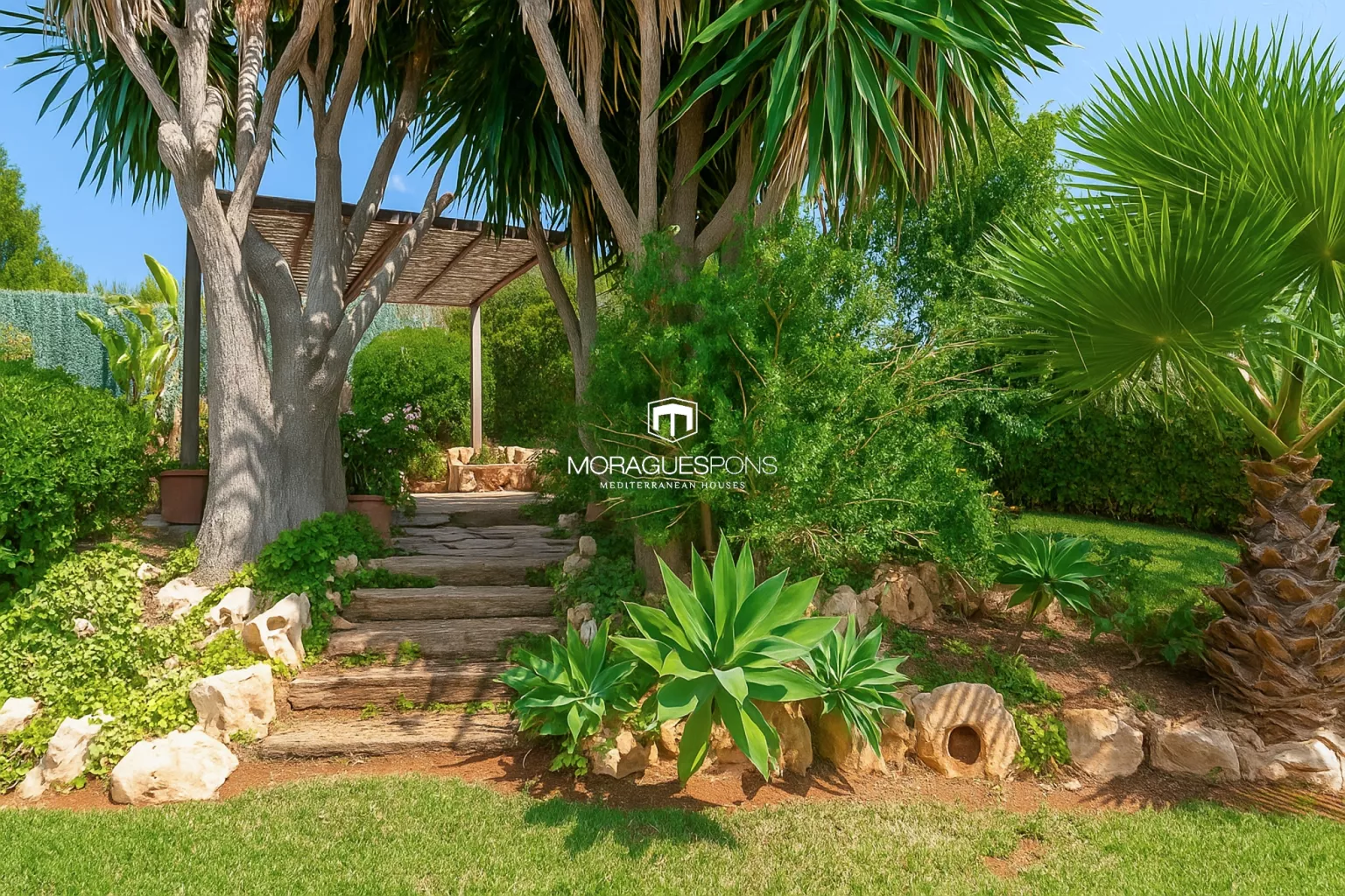 The 20 m² covered naya is one of the highlights of the home: the perfect Mediterranean porch for breakfast with views, reading in natural light or enjoying meals outdoors while sheltered from the sun.