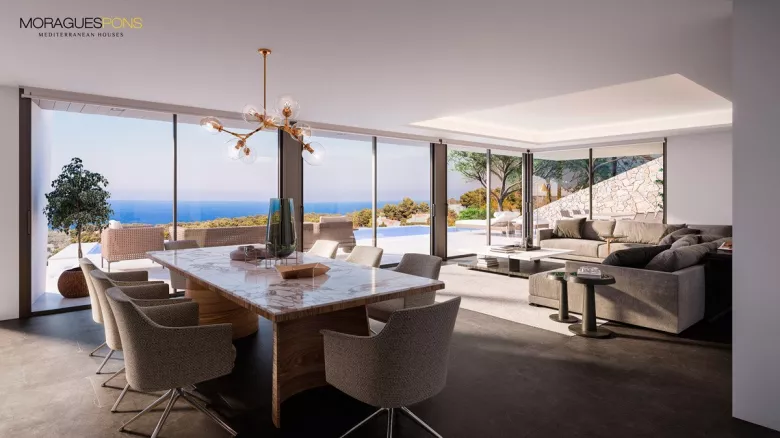 This magnificent villa is currently under construction with views over the bay of Jávea from the hill of Costa Nova. Thanks to its orientation we have a 180º view from the Montgó of Jávea to the Cap Martí allowing magnificent night views of the whole town.