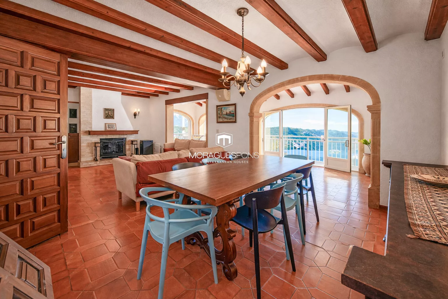 The spacious and bright living-dining room opens onto a glazed naya, creating a wonderful viewpoint over the Mediterranean. From here, the sea views are open, deep and constant, accompanying everyday life.