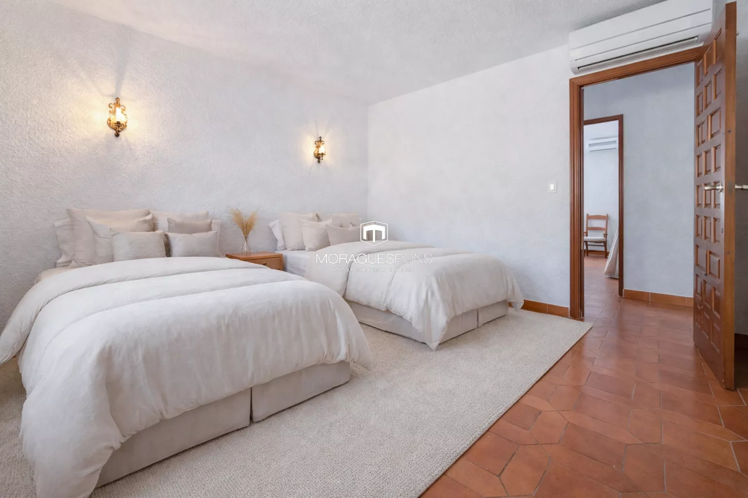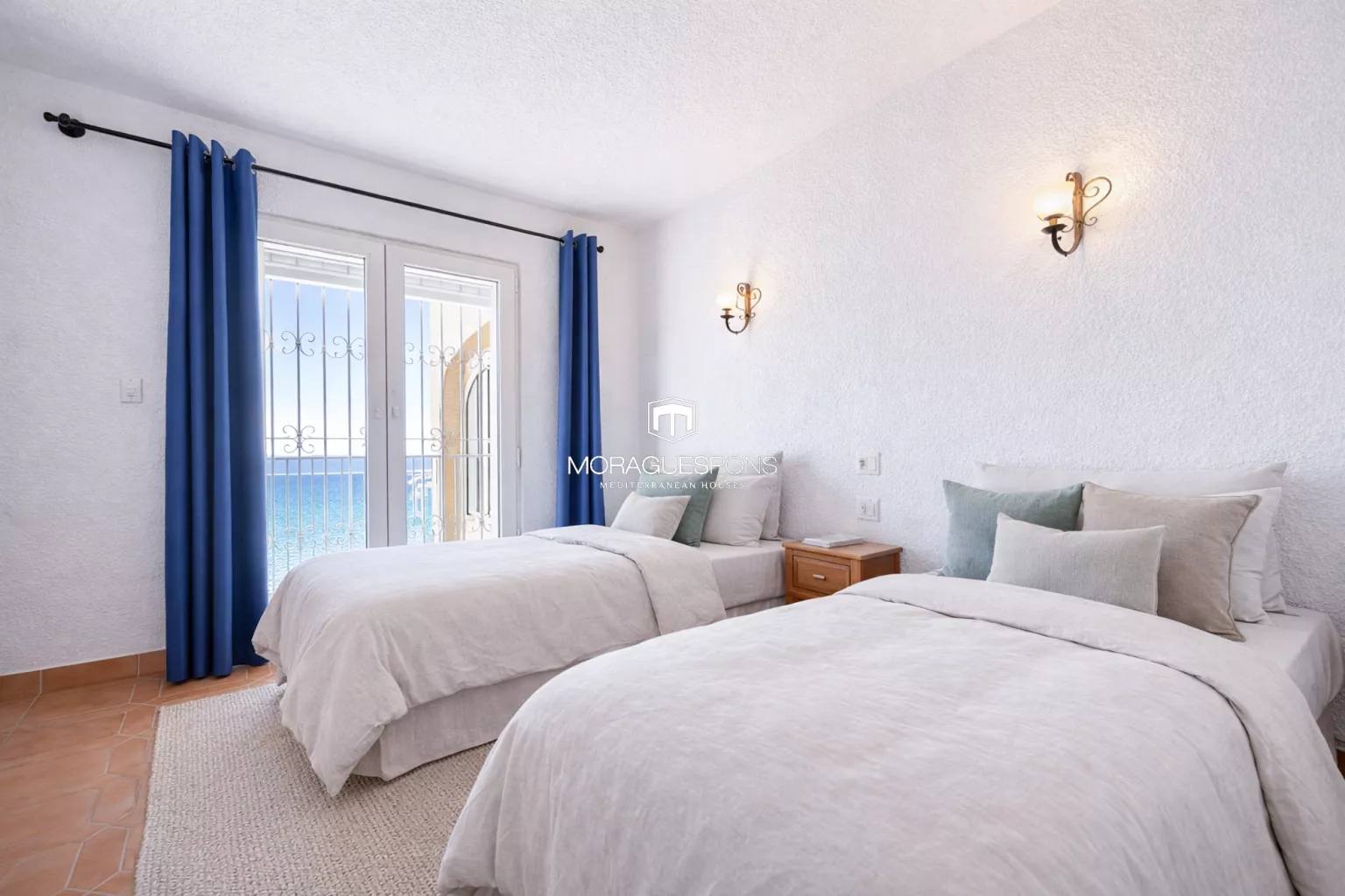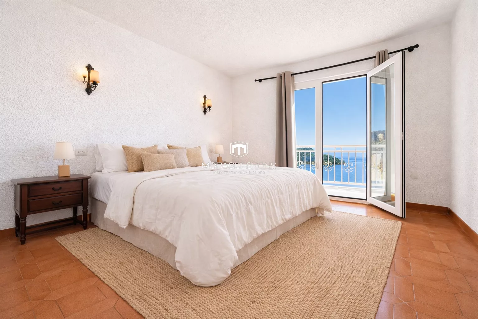 This floor offers three generous double bedrooms, one with an en-suite bathroom, while two enjoy direct sea views and access to a terrace. A second full bathroom serves the remaining bedrooms and guests.