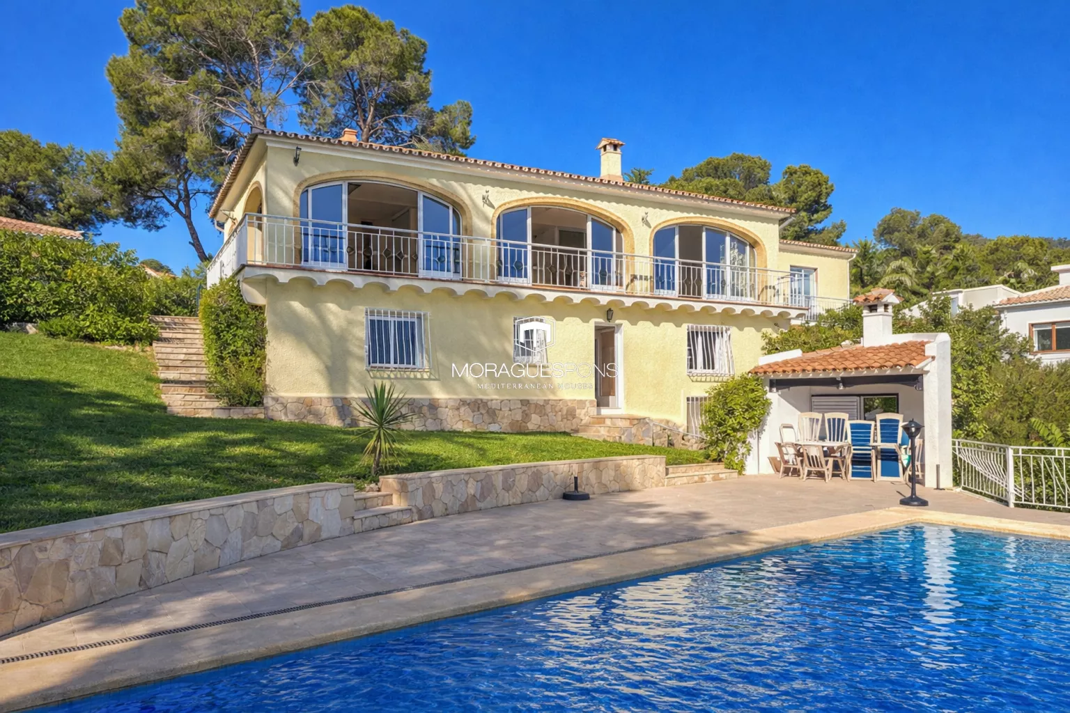 The outdoor area is designed for relaxed Mediterranean living.