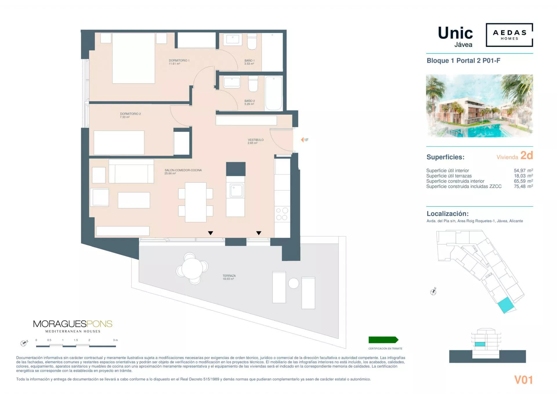 UNIC Javea, se compone de 58 viviendas de 2, 3 y 4 dormitorios distribuidas en planta baja con jardín. Incluye viviendas áticos, y duplex con grandes terrazas. Además, todas las viviendas dispondrán de plaza de garaje y trastero. El conjunto residencial contará con piscina y club social.