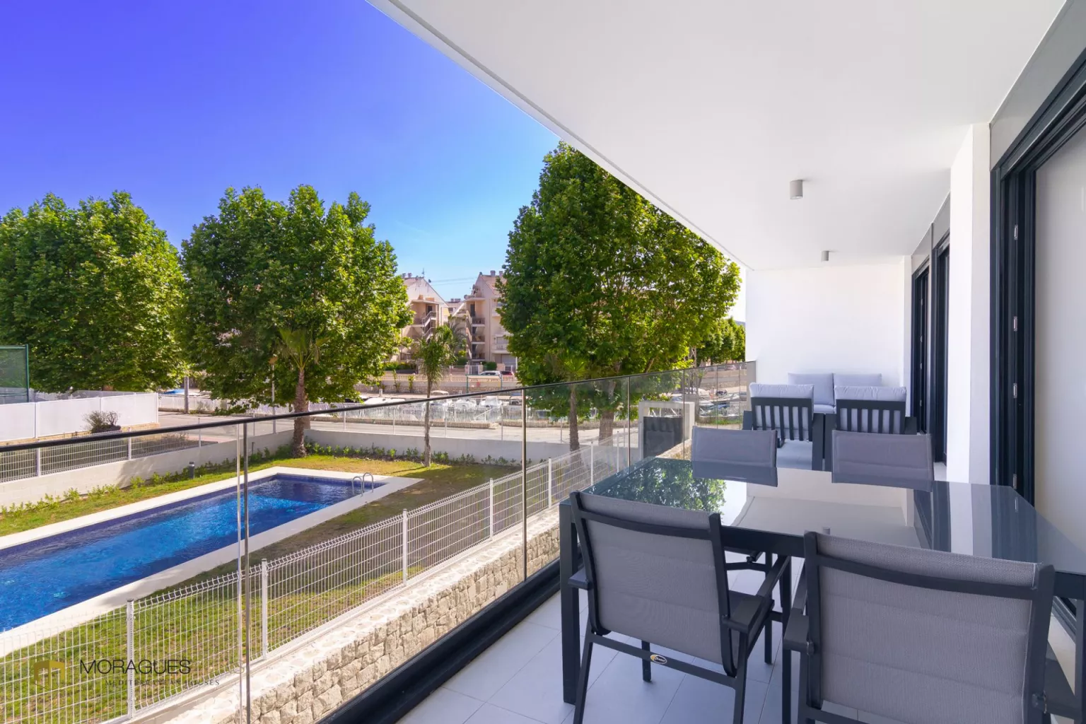 Straight lines, white and grey, the blue of the water and the green of the vegetation. Elegant and simple. A stone's throw from the beach and next to the canal. A generous terrace for unforgettable summer dinners and a swimming pool to cool off on hot August afternoons.