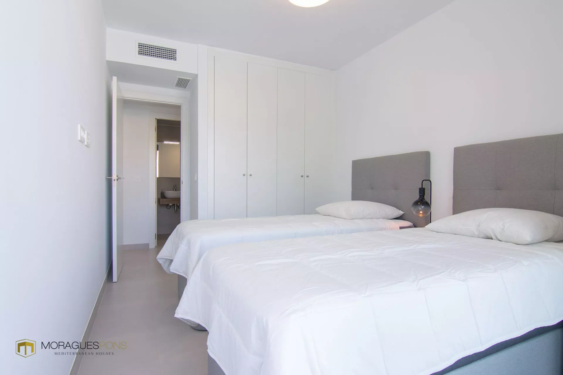 Des lignes droites, du blanc et du gris, le bleu de l'eau et le vert de la végétation. Élégant et simple. A deux pas de la plage et à côté du canal. Une terrasse plus que généreuse pour des dîners d'été inoubliables et une piscine pour se rafraîchir lors des chaudes après-midi d'août.