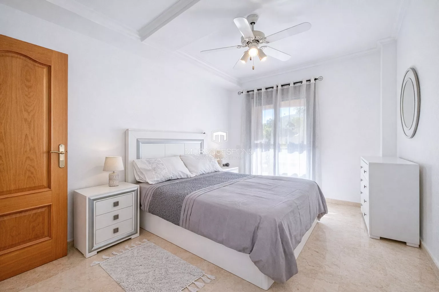 Floridamar est une résidence qui se distingue : promenades entre palmiers, baignades toute l’année dans la piscine chauffée, salle de sport sur place et proximité immédiate de l’un des quartiers les plus animés et recherchés de Jávea.