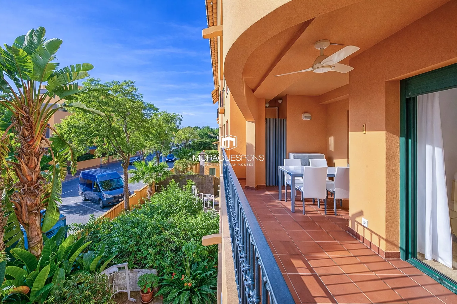 Le salon donne accès à une agréable terrasse, idéale pour les petits-déjeuners au soleil, les après-midis de détente ou les soirées d’été, avec des vues ouvertes et agréables qui apportent une belle sensation d’espace et de calme.