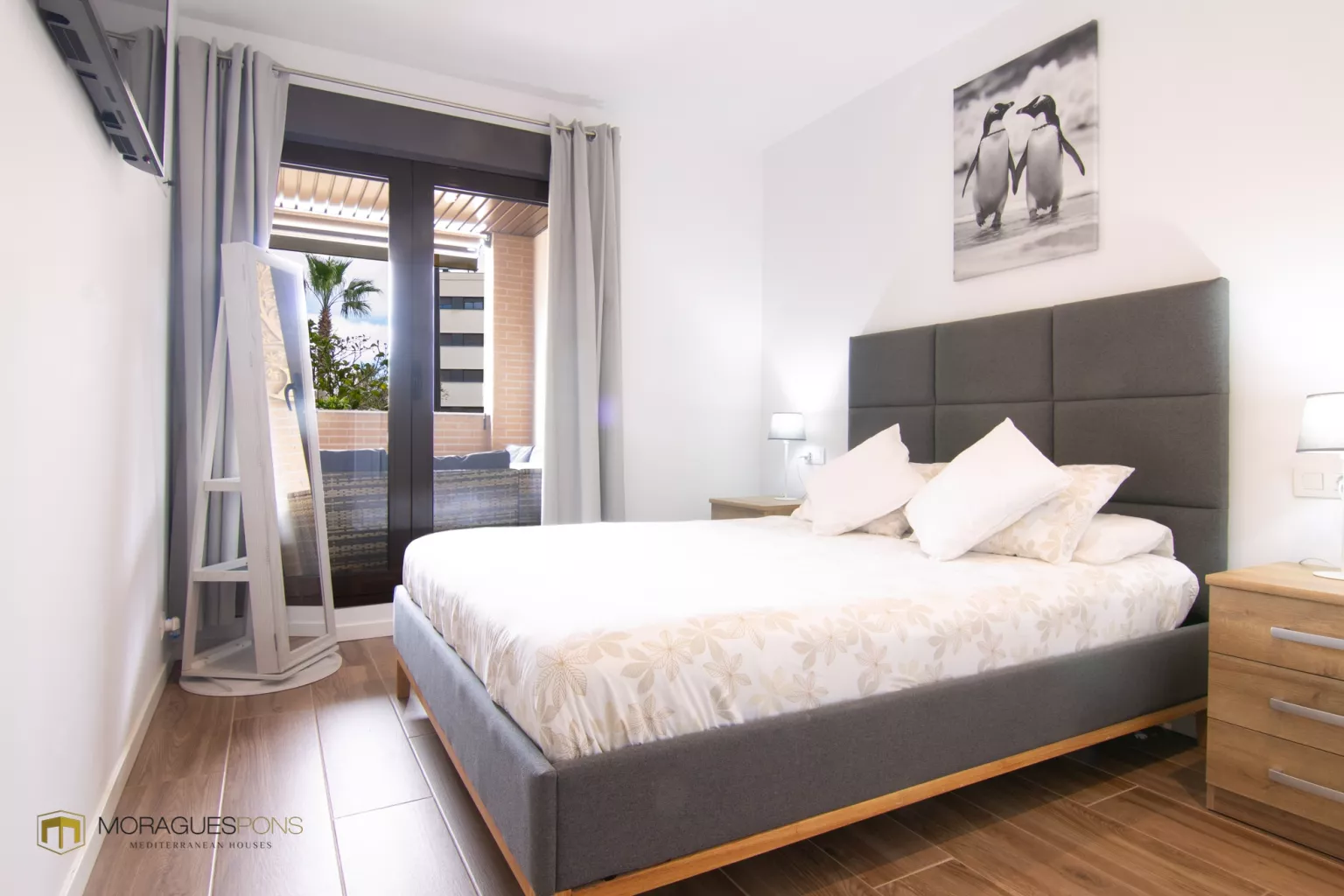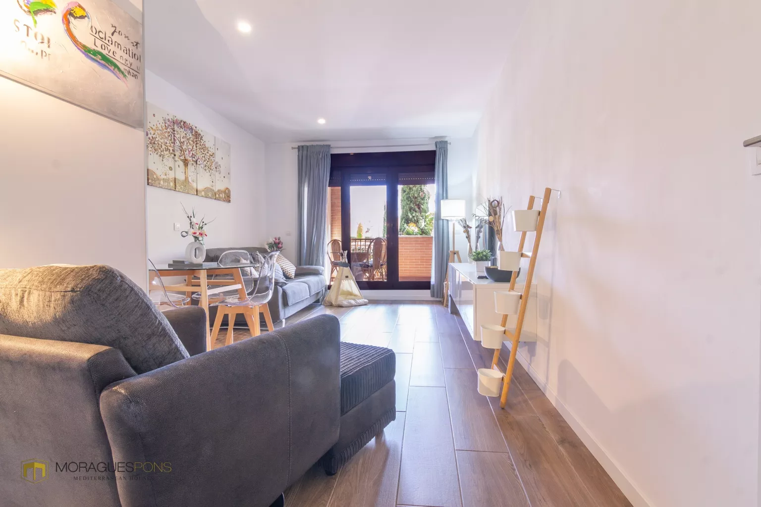 Imaginez-vous réveiller chaque matin avec la brise marine et la promesse d’une journée parfaite au bord de la Méditerranée. Cet élégant appartement en rez-de-chaussée vous offre exactement cela : un mode de vie confortable et détendu, à seulement deux minutes à pied de la célèbre plage de l’Arenal.