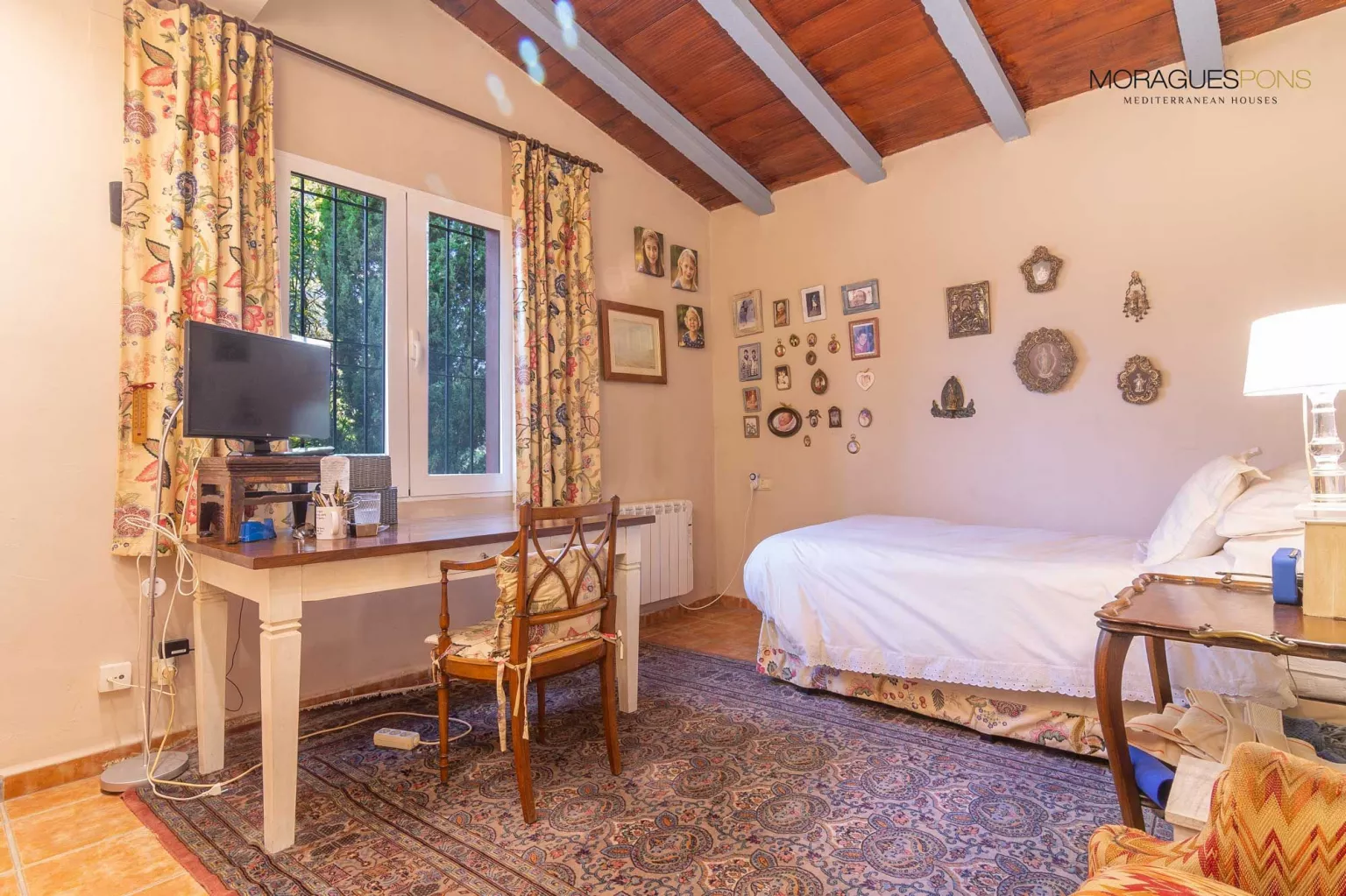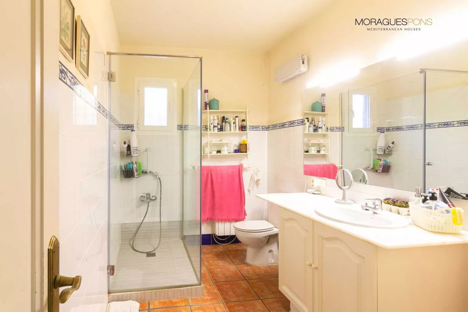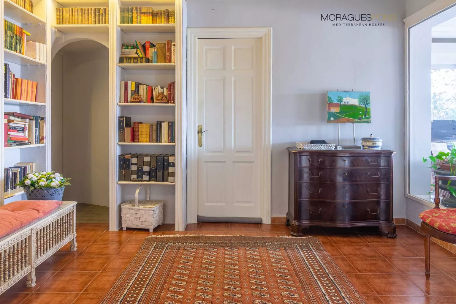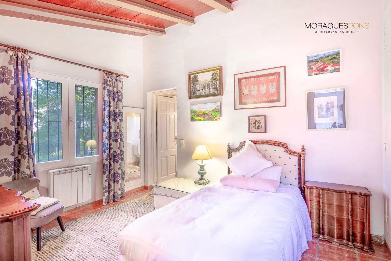 La maison, construite sur un seul étage, dispose de 6 chambres et 5 salles de bains (3 ensuite avec douche), bibliothèque avec cheminée et cuisinière à bois dans le salon, salle à manger ouverte sur la cuisine qui à son tour est reliée à la salle à manger d'été extérieure idéale pour les jours d'été.