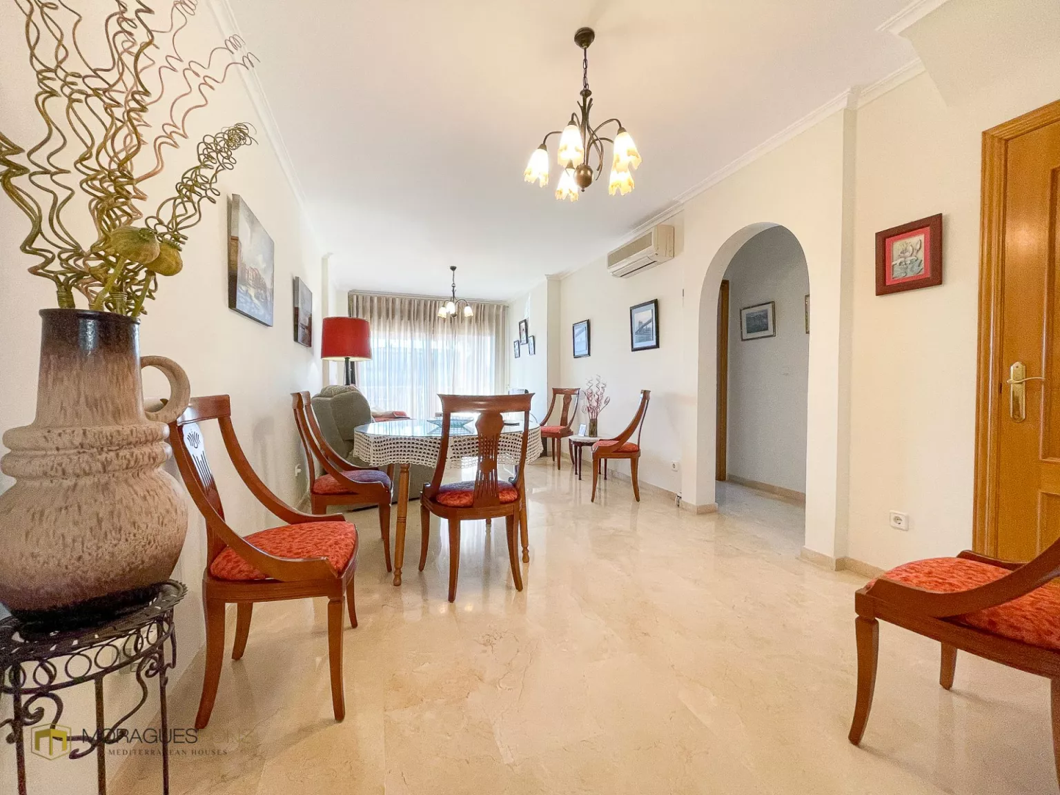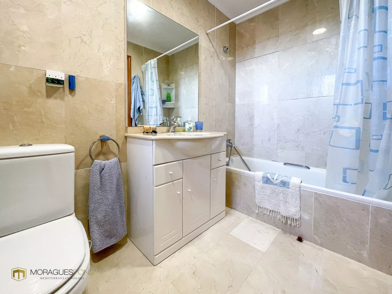 Appartement penthouse de deux chambres à coucher et deux salles de bains dans un quartier résidentiel à quelques minutes de marche de la plage. Il dispose du chauffage par le sol et de la climatisation dans toutes les pièces. Une des chambres se trouve au rez-de-chaussée de la propriété et l'autre avec sa salle de bains et son dressing au dernier étage qui dispose également d'une terrasse privée pour cette chambre. Grande cuisine avec garde-manger avec accès depuis le hall d'entrée. Toutes les orientations sont orientées vers le sud, l'ouest et le nord, car il s'agit d'une propriété située à l'angle du bloc.