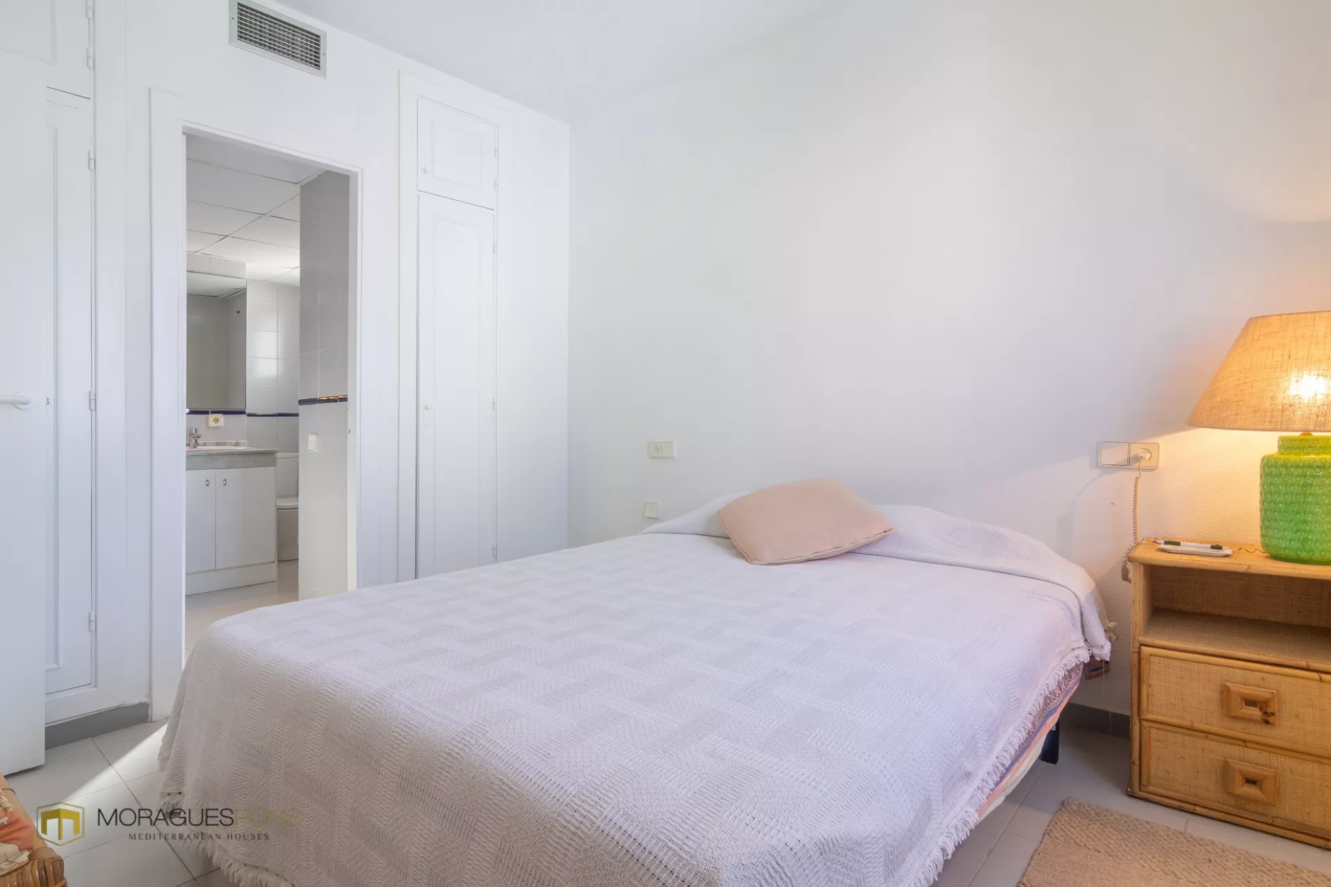 L'étage supérieur abrite trois chambres lumineuses, dont l'une dispose d'une salle de bain attenante, ainsi qu'une autre salle de bain partagée par les deux autres chambres. Depuis le solarium, les vues sur la mer et l'emblématique Montgó sont tout simplement incroyables, ce qui en fait l'endroit idéal pour se détendre et se relaxer.