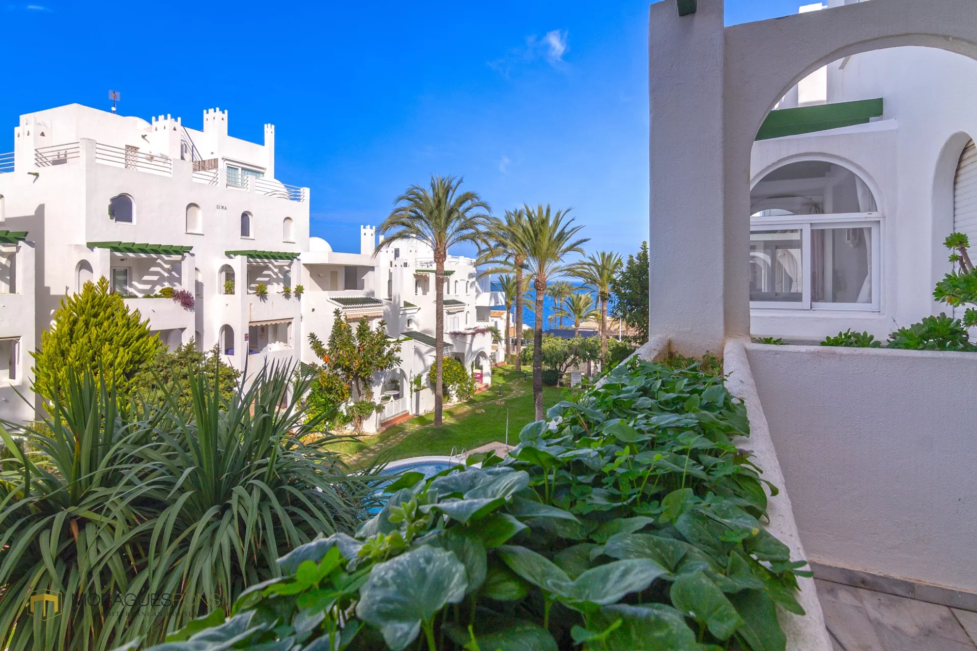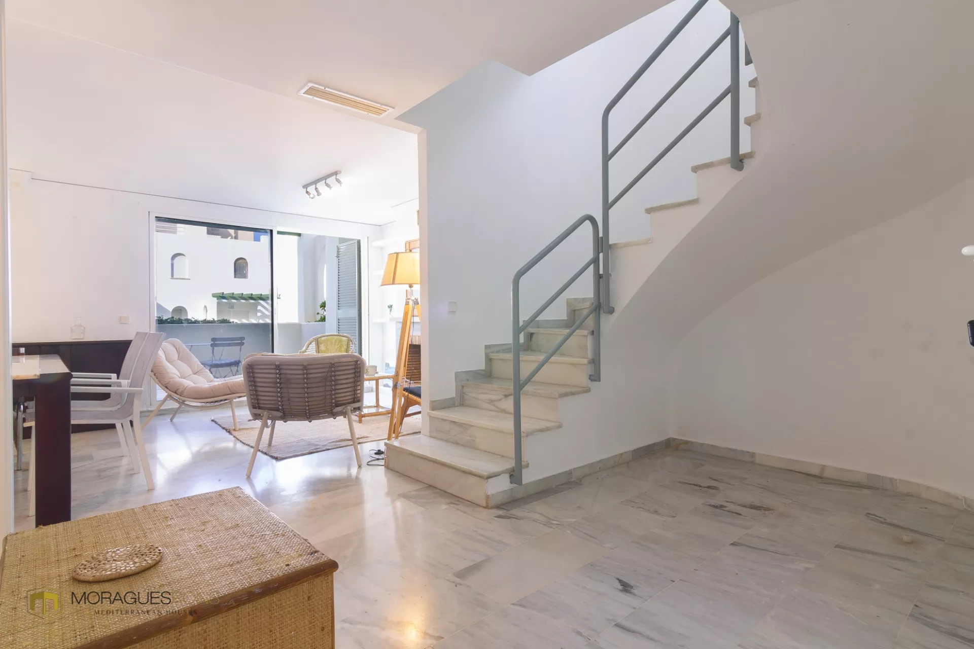 Au rez-de-chaussée, vous trouverez un spacieux salon-salle à manger qui s'ouvre sur une excellente terrasse, d'où vous pourrez contempler la mer et profiter de la vue sur les magnifiques jardins de l'immeuble. La cuisine est entièrement équipée et dispose d'une galerie, ainsi que d'une salle de bain complète qui complète cette zone.