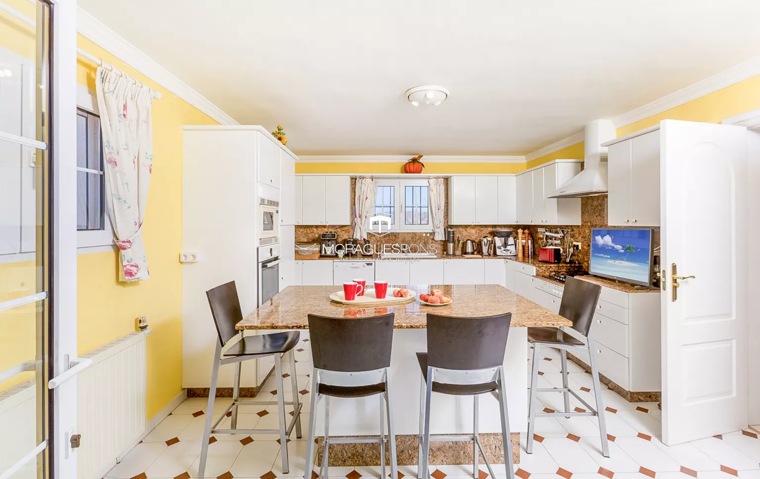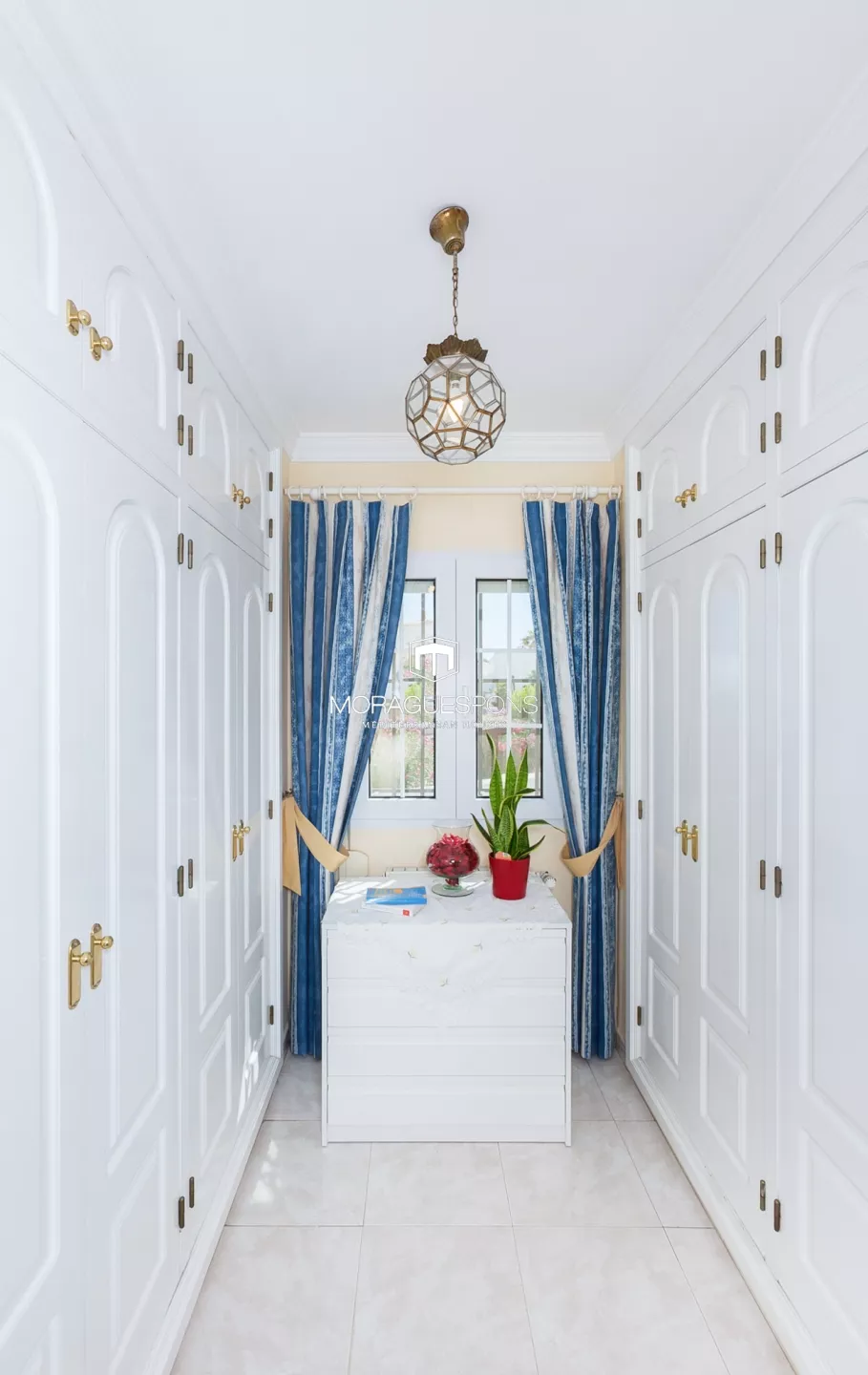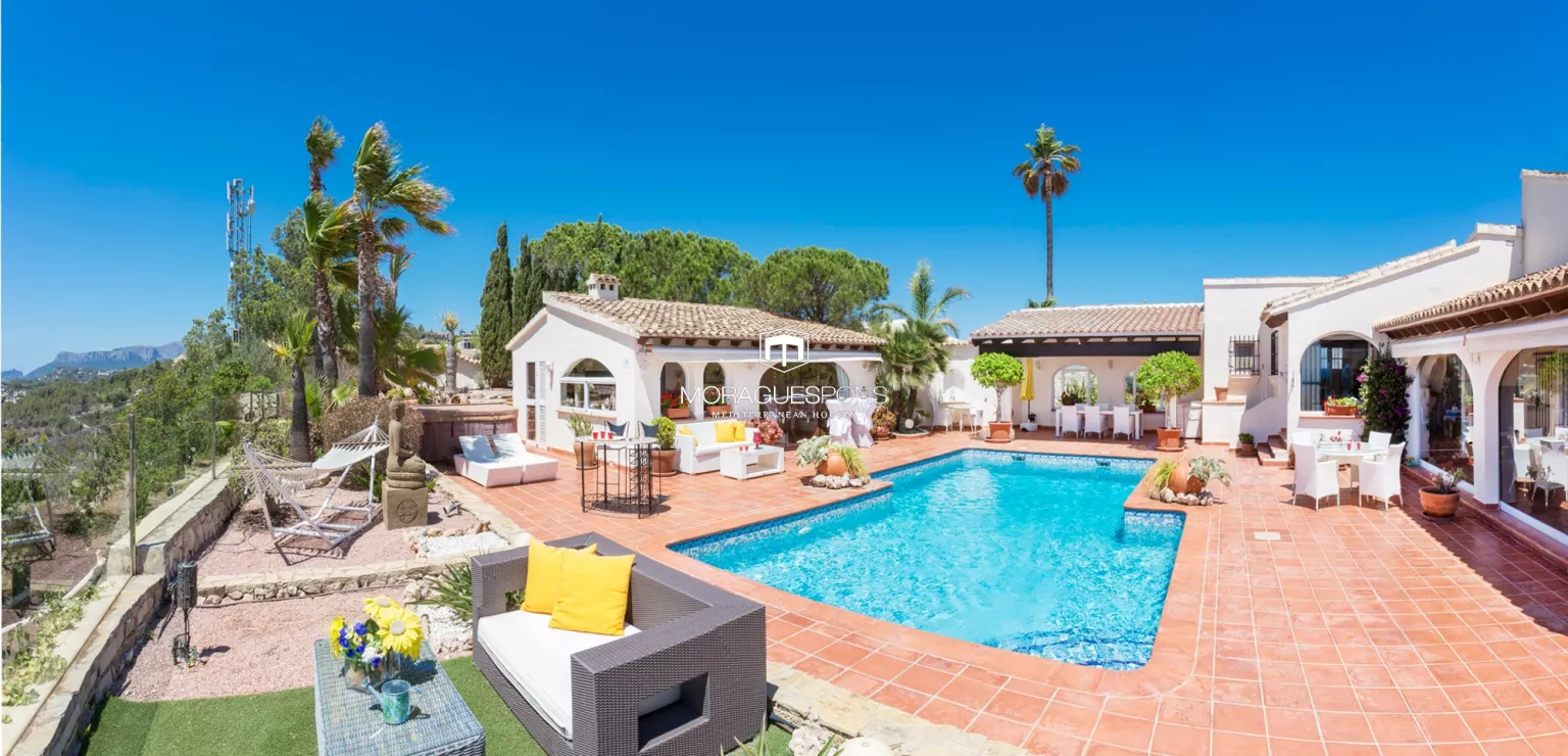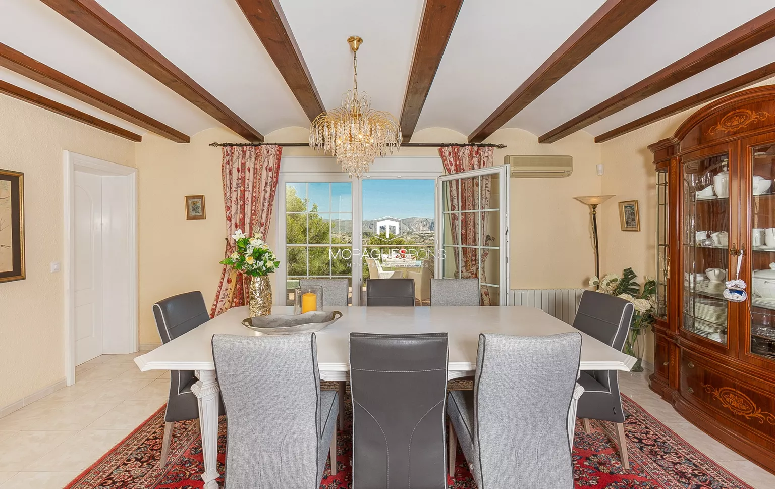 La villa comprend plusieurs chambres pour les invités, chacune conçue avec style et confort, ainsi que différents espaces pensés pour la détente, reflétant le mode de vie paisible de Moraira. À l’extérieur, la terrasse principale avec bar et cuisine d’été devient le cœur de la maison — idéale pour les repas en famille, les déjeuners en plein air ou simplement profiter de longues après-midis ensoleillées.