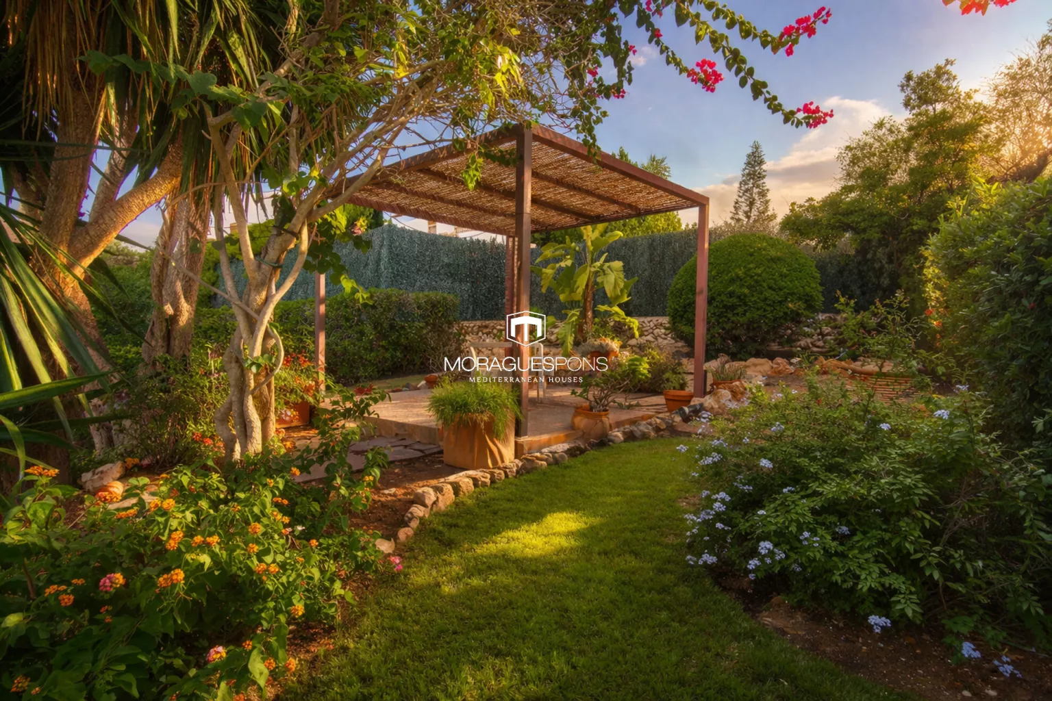 Espaces ensoleillés et ombragés, arrosage automatique rénové en 2024 et un pavillon au fond du jardin qui invite à de longs petits-déjeuners et à des moments qui s’éternisent.
