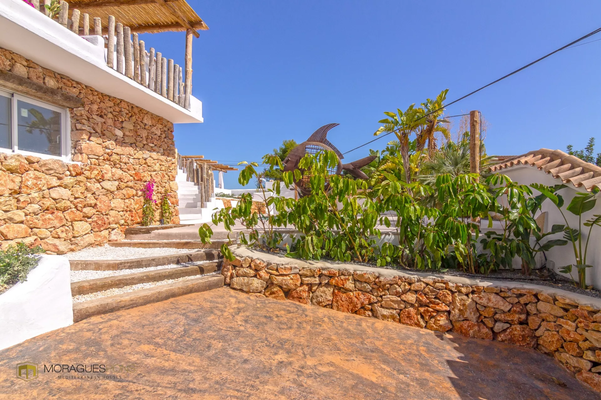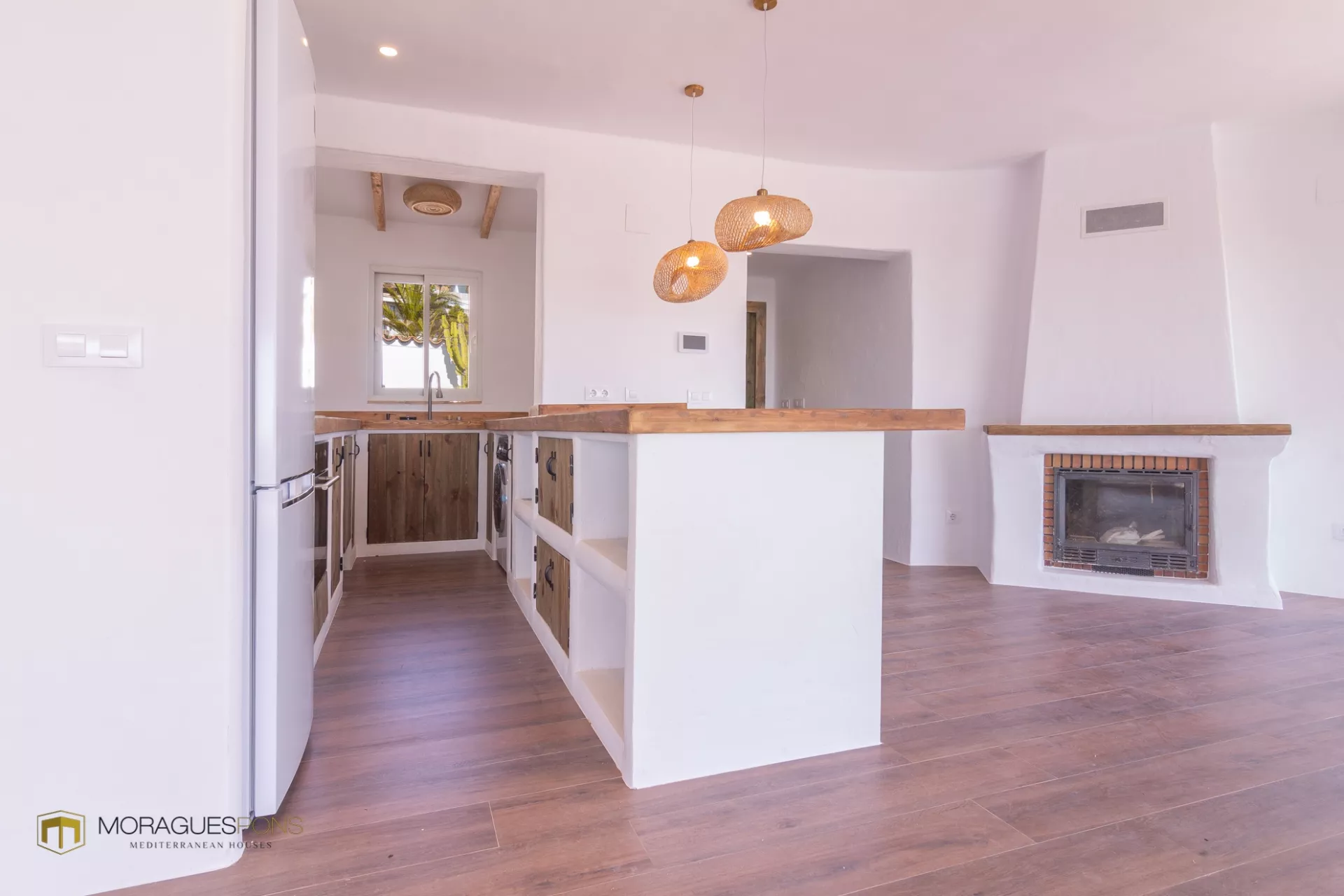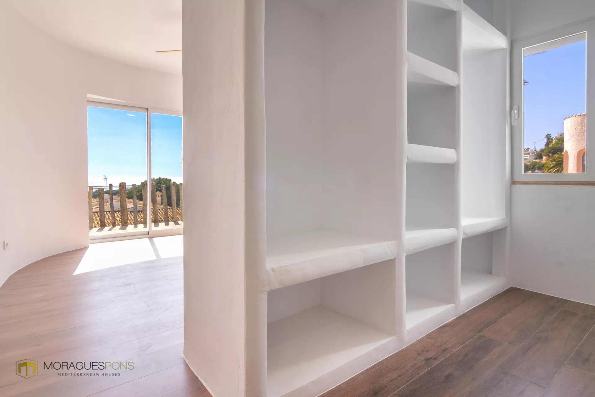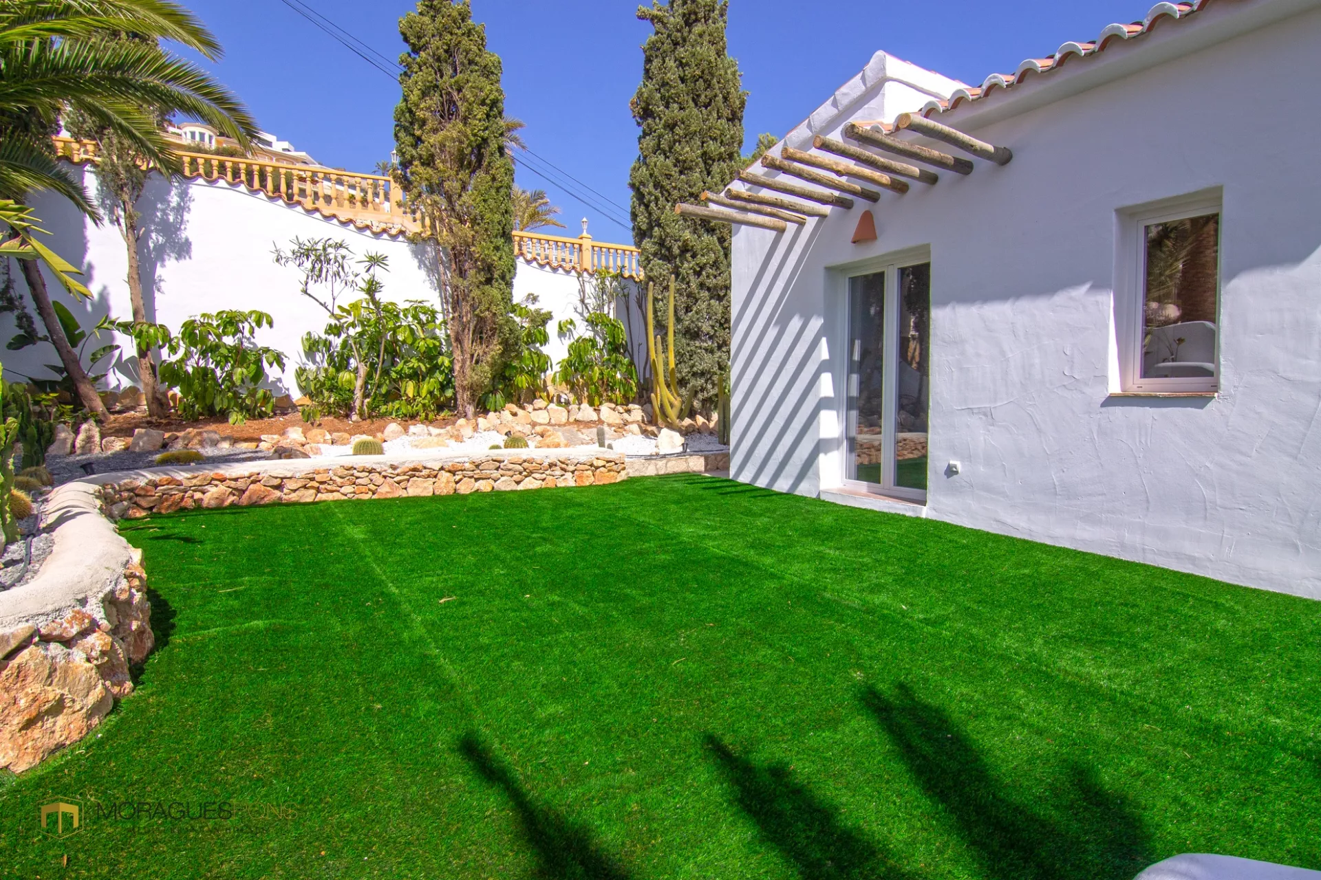 Plongez dans le charme méditerranéen de cette spectaculaire villa de style Ibiza à Moraira. Bénéficiant d'une vue imprenable sur la mer et récemment rénovée, cette propriété allie la tranquillité de la côte au luxe moderne. Le jardin luxuriant de bougainvilliers entoure la maison, où vous pourrez profiter d'une piscine étincelante, de pergolas en bois et en roseaux, d'un barbecue pour les soirées d'été, de pelouses luxuriantes et de nombreux espaces pour s'asseoir.