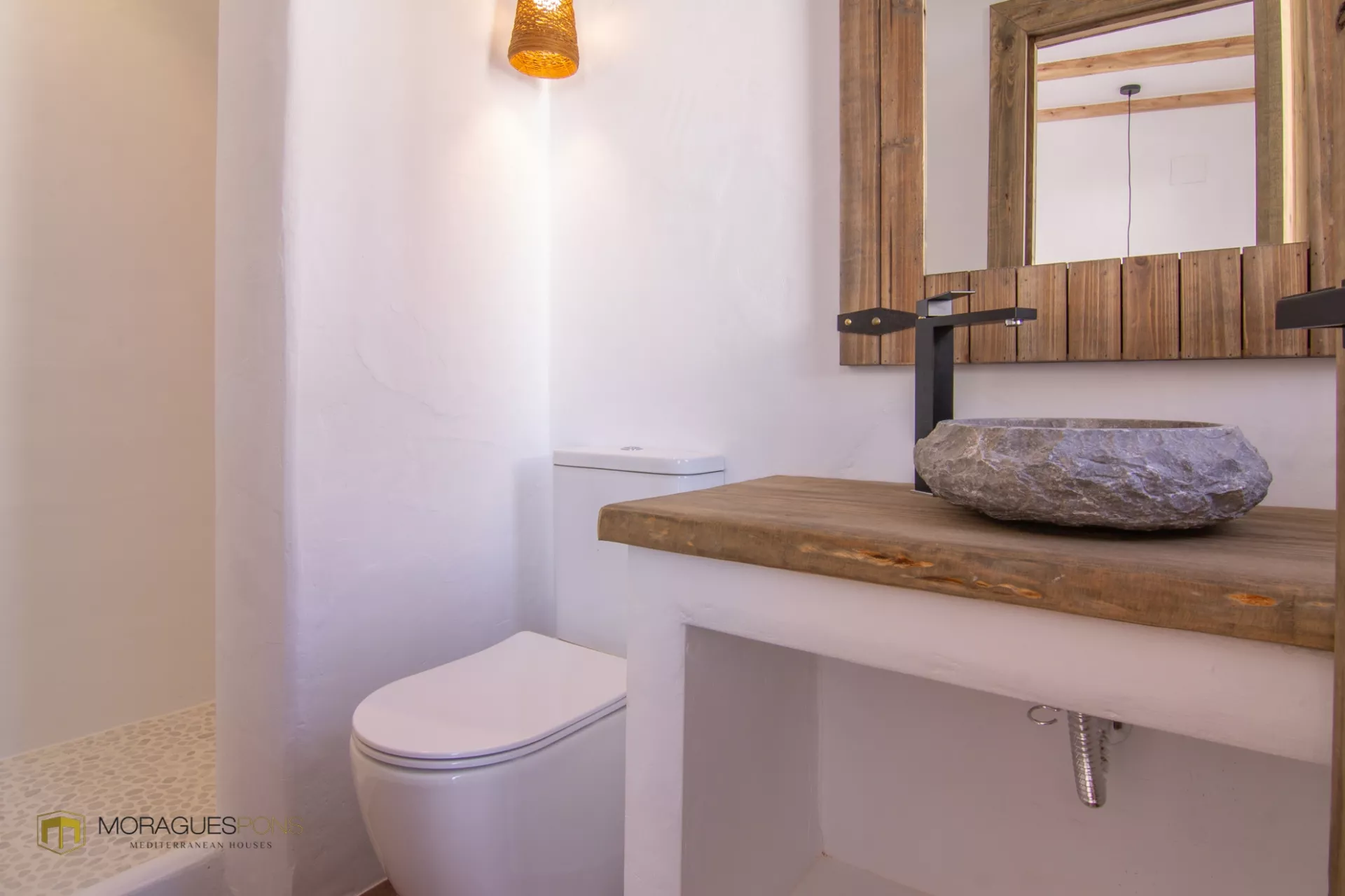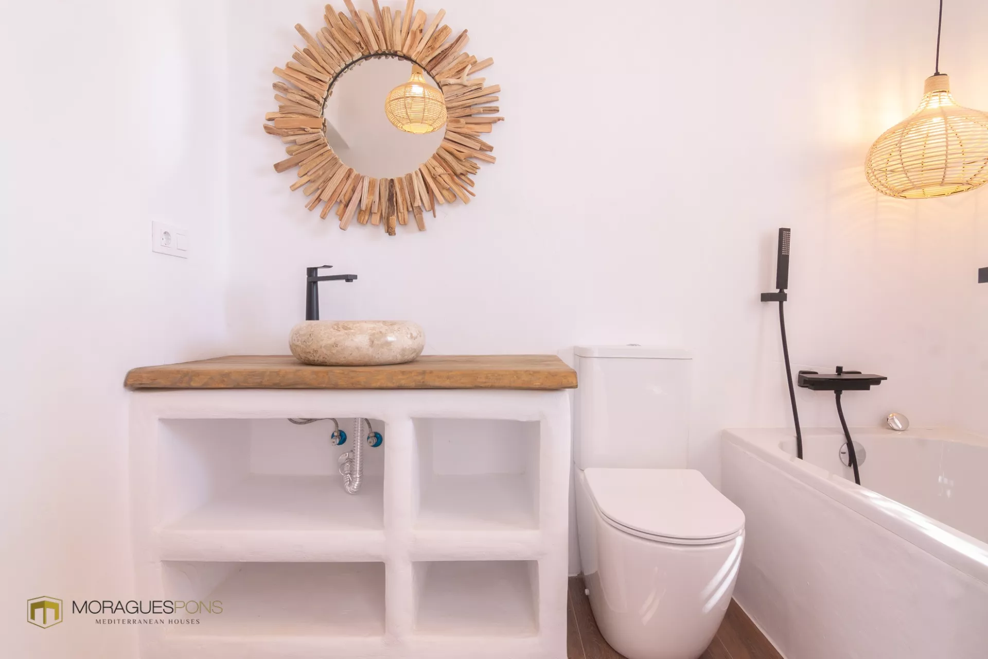 À l'intérieur, la maison principale éblouit par sa décoration méditerranéenne lumineuse. Avec ses trois chambres, chacune dotée d'une salle de bains privative, cette maison offre confort et intimité à ses résidents. La cuisine ouverte sur le salon est parfaite pour recevoir, tandis que les vues sur la mer depuis le salon vous transporteront dans une oasis de sérénité. En outre, il y a un appartement séparé avec une cuisine et une salle de bains privées, idéal pour les visiteurs ou pour une utilisation supplémentaire.