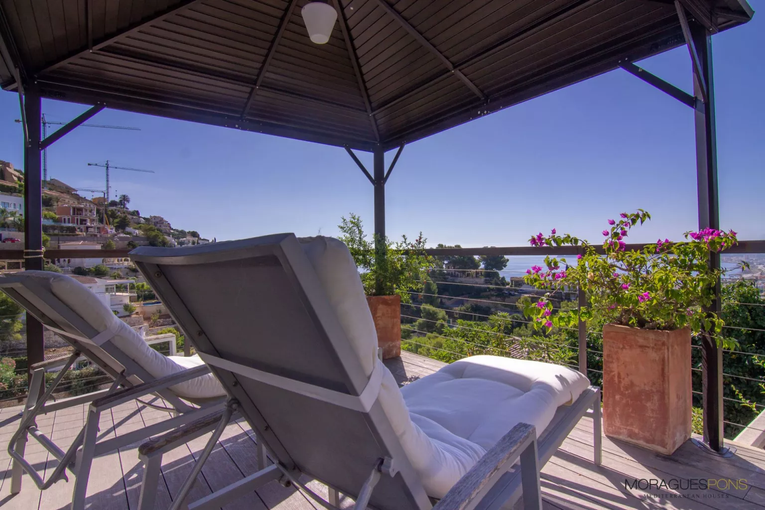 Vue magnifique sur la baie de Javea, de cette villa de luxe. Si vous souhaitez acheter une villa avec vue sur la mer avec tout luxe de détails et un des meilleurs quartiers de Javea, appelez-nous pour fixer un rendez-vous pour cette villa à vendre à Jávea