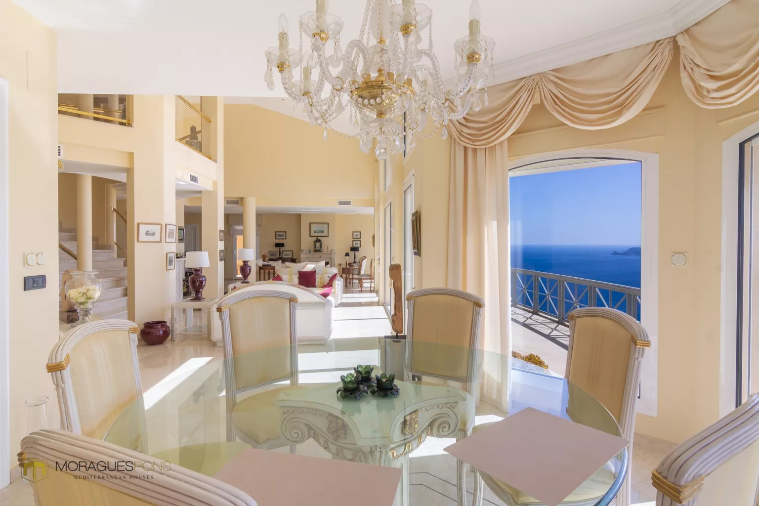 Séjourner ici est un havre de paix, car vous pouvez profiter de la mer bleue depuis pratiquement toutes les pièces. Trois niveaux où l'on peut se déconnecter, écouter de la musique, lire un livre ou simplement se perdre dans sa propre maison, seul ou en compagnie. Le rez-de-chaussée avec ses hauts plafonds, ses pièces ouvertes sur la mer, sa cuisine et sa salle à manger forment un espace pratiquement diaphane avec une touche méditerranéenne fraîche. Mais attendez, si vous descendez quelques marches, dans la zone des chambres à coucher, vous découvrirez votre retraite spirituelle particulière, oui, celle où chaque lever de soleil, chaque premier rayon de soleil, vous fera oublier ce à quoi vous n'avez pas besoin de penser.