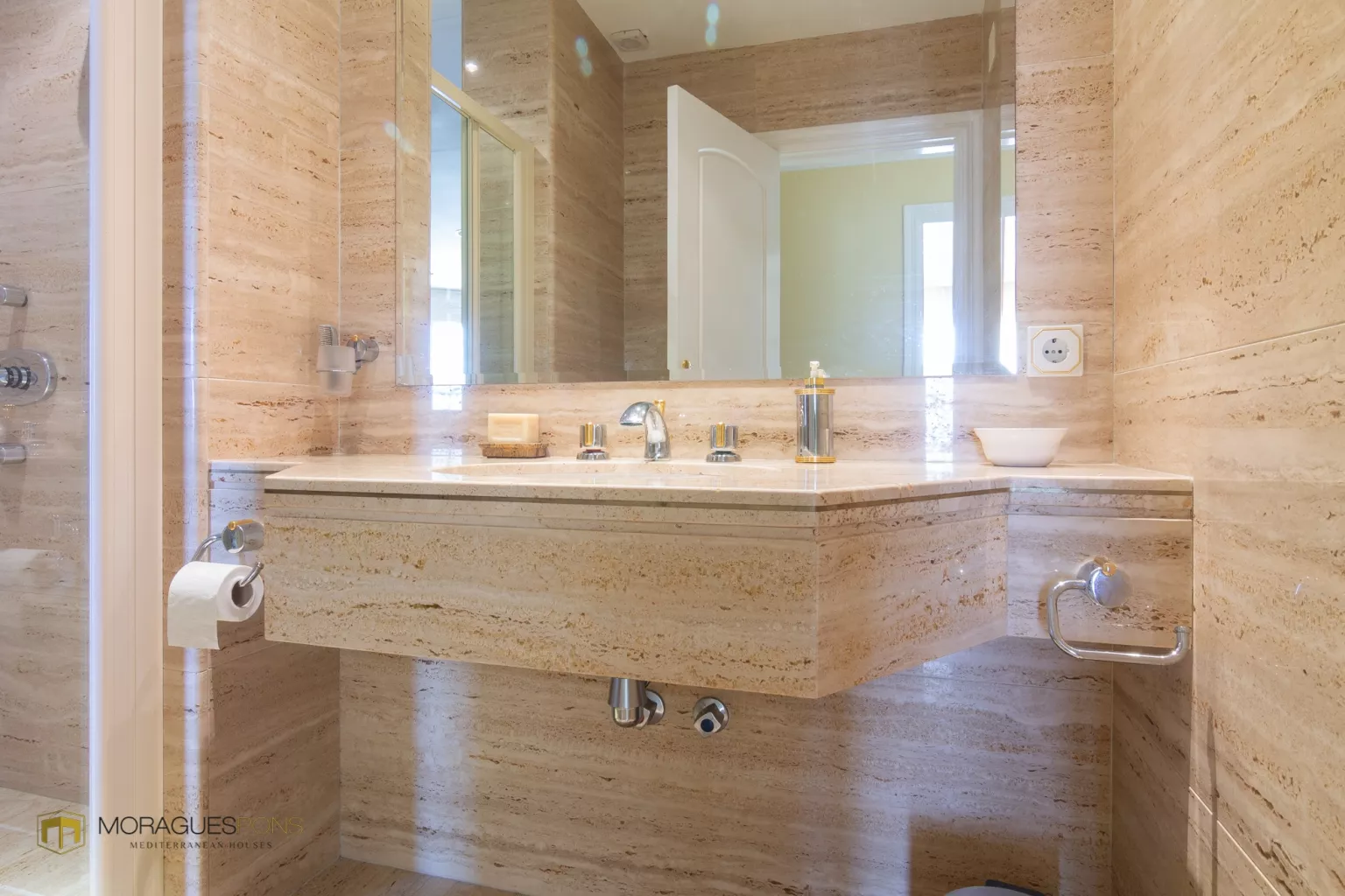 La maison est construite avec les matériaux les plus luxueux. Le marbre est présent dans toutes les pièces, même à l'extérieur.