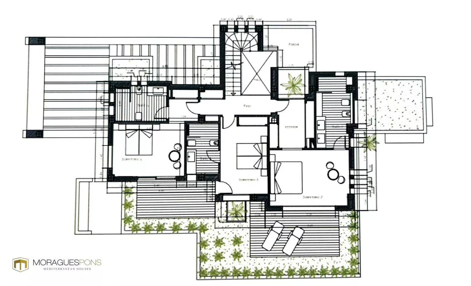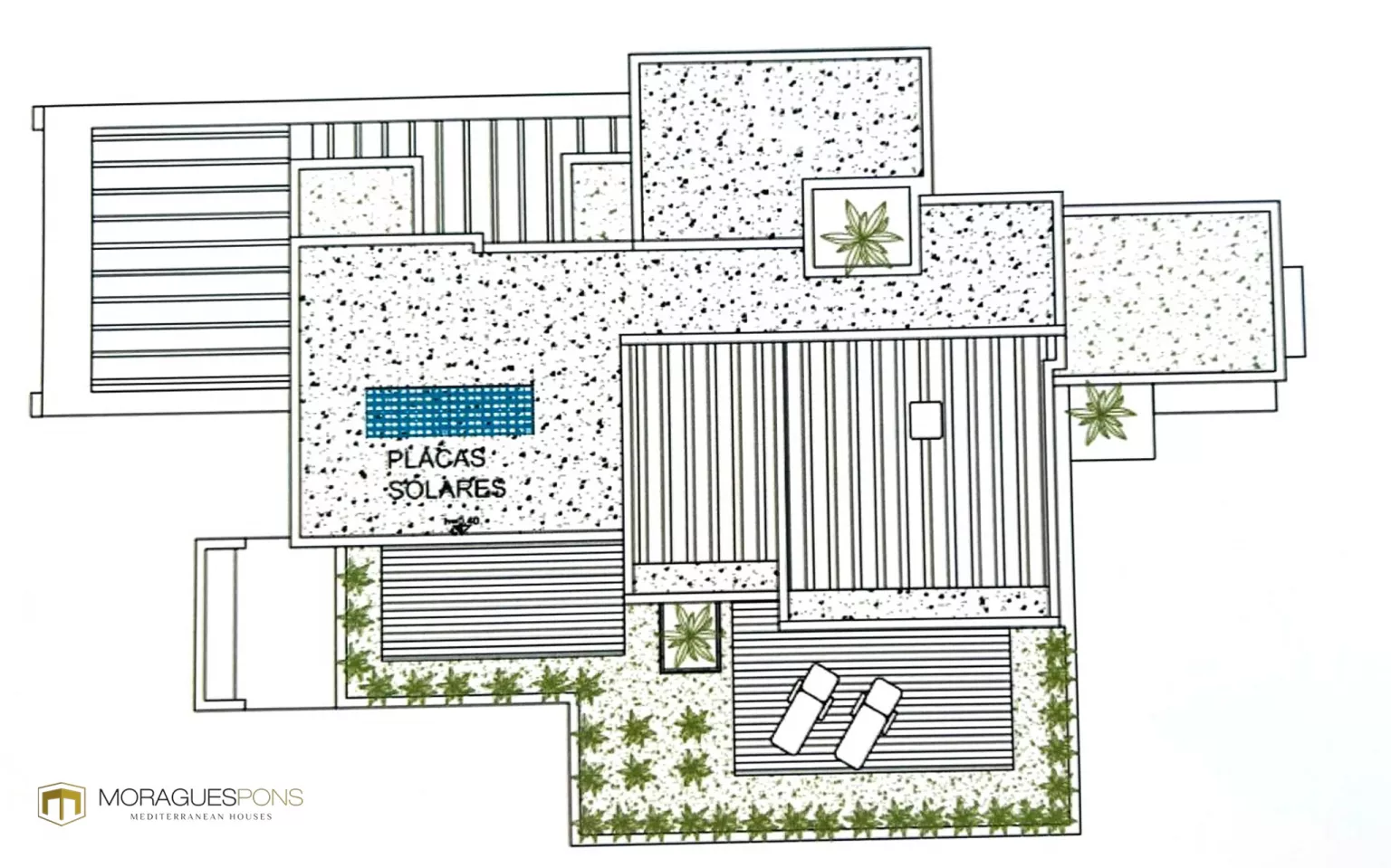 La propriété comprend 4 chambres doubles spacieuses, chacune avec sa propre salle de bains, ainsi que des toilettes pour les invités. La cuisine ouverte, spacieuse et moderne, est complétée par une buanderie pratique.