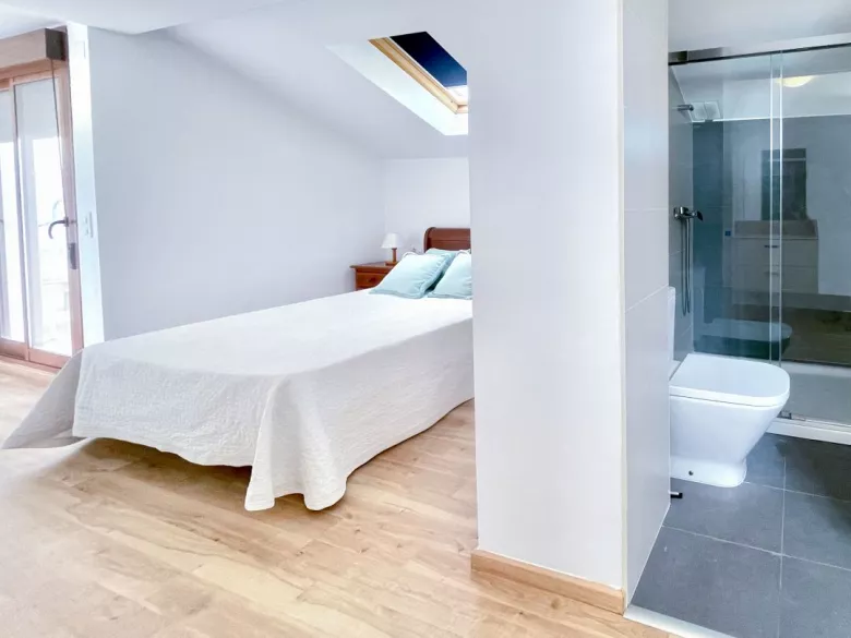 Alquiler de larga estancia en el centro histórico de Jávea. Apartamento de una habitación y dos baños. Se distribuye en planta baja, salón-comedor, baño, cocina y balcones. en la planta de arriba se encuentra la habitación, un baño y la terraza.