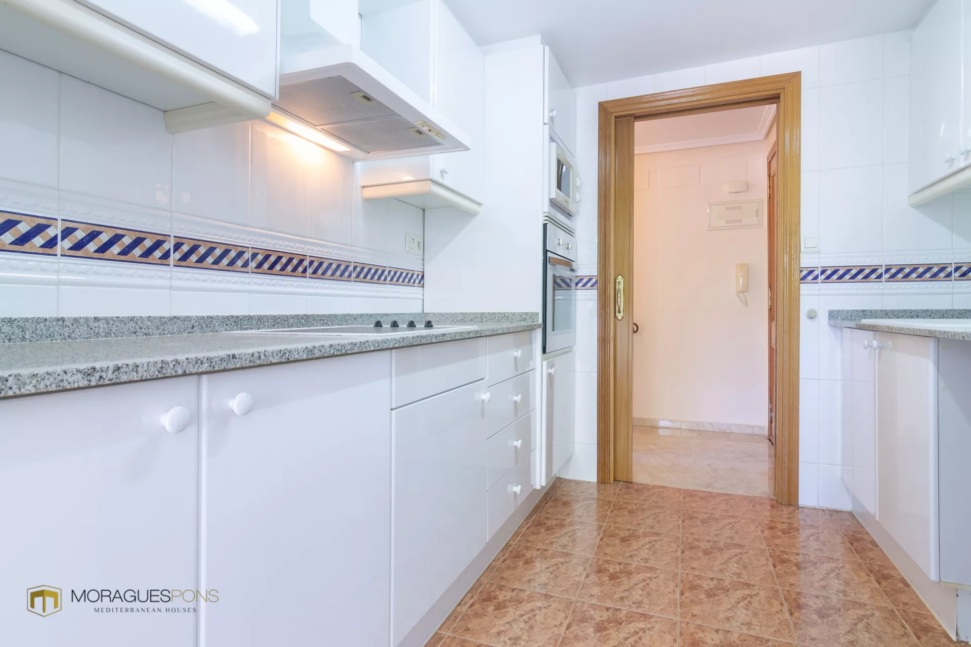 Y qué decir del apartamento, al entrar en él ya nos trasmite la sensación de hogar. Un piso preparado para vivir todo el año, con una cocina muy funcional y los espacios justos para disfrutar de una nueva vida