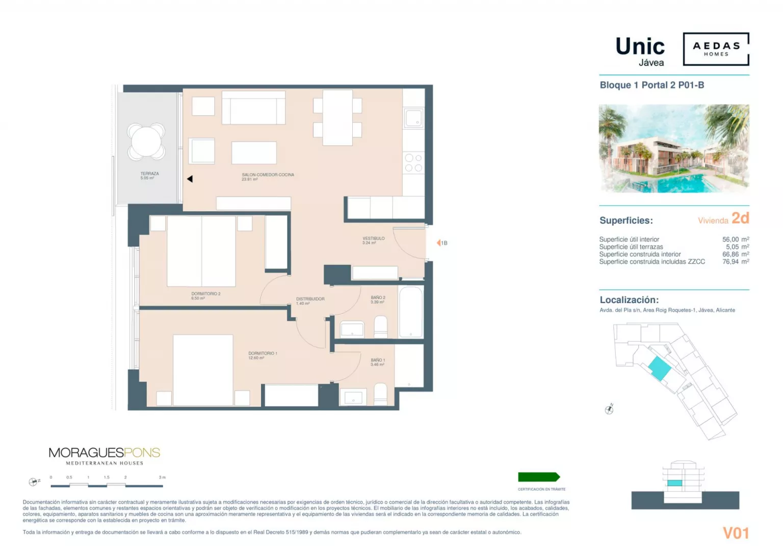 UNIC Javea bestaat uit 58 woningen met 2, 3 en 4 slaapkamers verdeeld over de begane grond met tuin. Het omvat penthouses en duplexen met grote terrassen. Bovendien beschikken alle woningen over parkeerplaatsen en bergingen. Het wooncomplex heeft een zwembad en een sociale club.