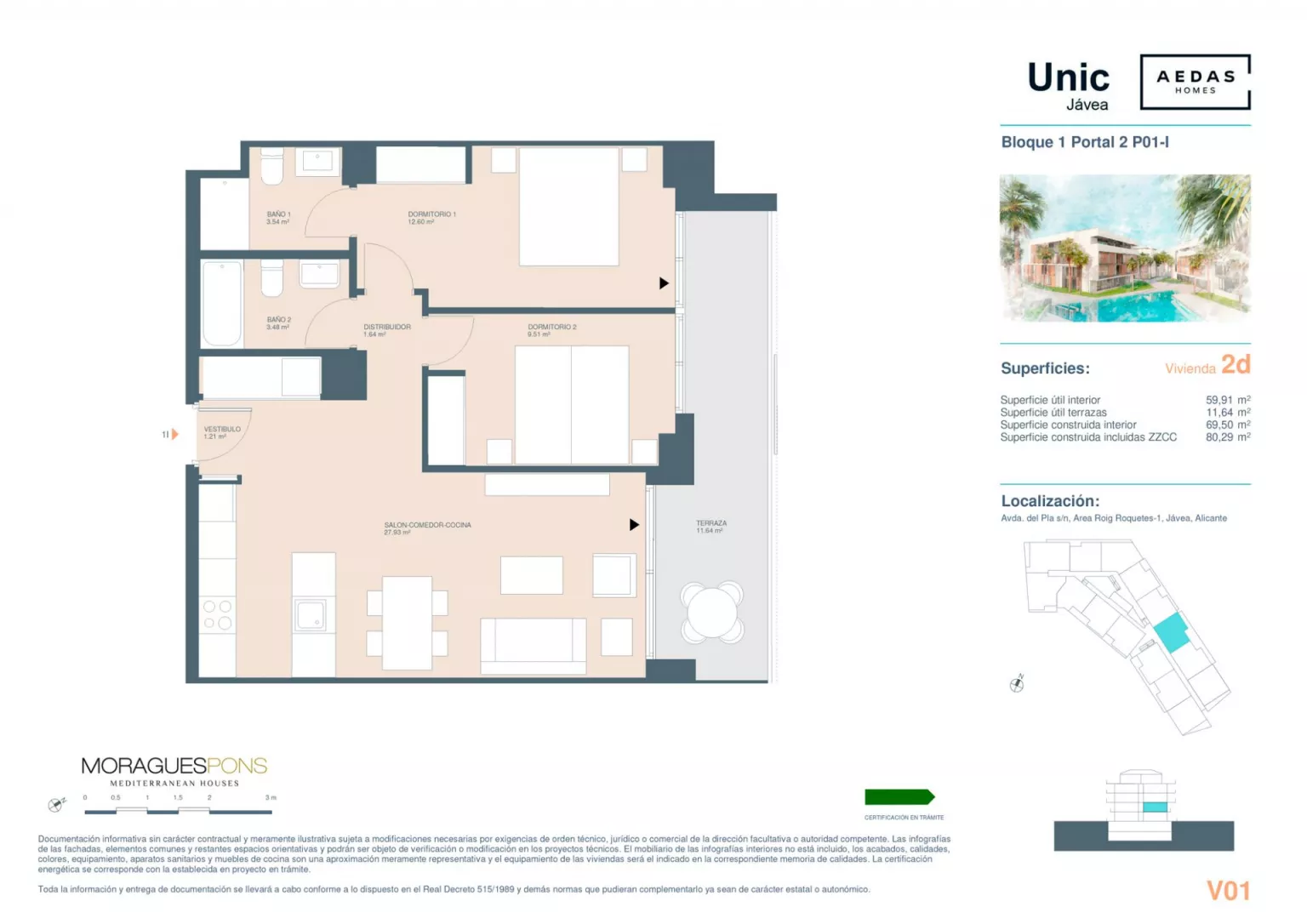 UNIC Javea bestaat uit 58 woningen met 2, 3 en 4 slaapkamers verdeeld over de begane grond met tuin. Het omvat penthouses en duplexen met grote terrassen. Bovendien beschikken alle woningen over parkeerplaatsen en bergingen. Het wooncomplex heeft een zwembad en een sociale club.