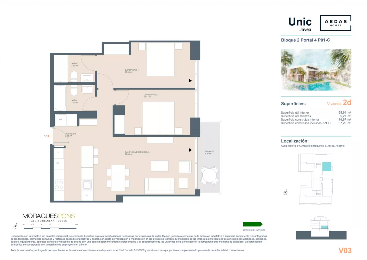 UNIC Javea bestaat uit 58 woningen met 2, 3 en 4 slaapkamers verdeeld over de begane grond met tuin. Het omvat penthouses en duplexen met grote terrassen. Bovendien beschikken alle woningen over parkeerplaatsen en bergingen. Het wooncomplex heeft een zwembad en een sociale club.