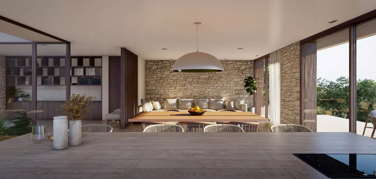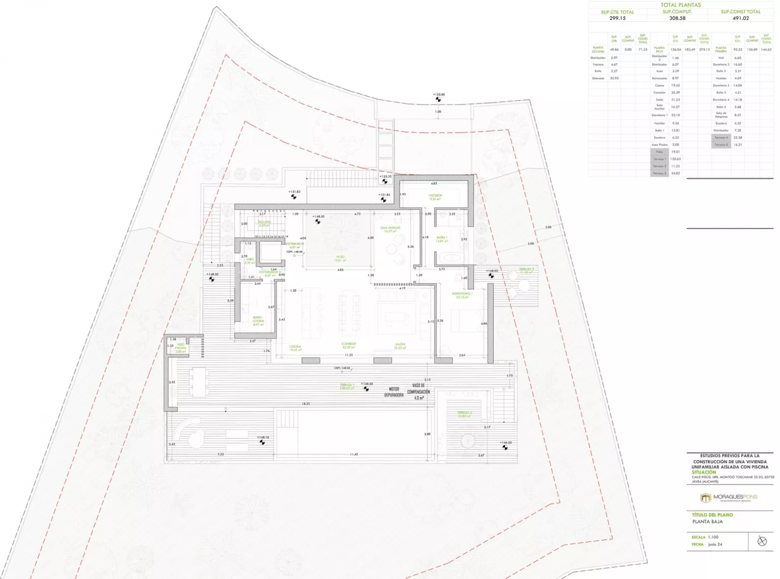 PROJECT WITH LICENCE nº LOM 2025/77 Dit nieuwe project is exclusief voor MORAGUESPONS en is ontworpen door architectuurstudio Singular Studio. Villa Piscis is ontworpen om elke dag van te genieten en te beleven, waardoor het comfortabel en toegankelijk is, waarbij gebruik wordt gemaakt van elke hoek van het perceel en het huis. Het heeft een totaal van 1.580 vierkante meter perceel op het zuiden en 491 vierkante meter bebouwd oppervlak, waarin we vier grote slaapkamers vinden met een eigen badkamer en gastentoilet.