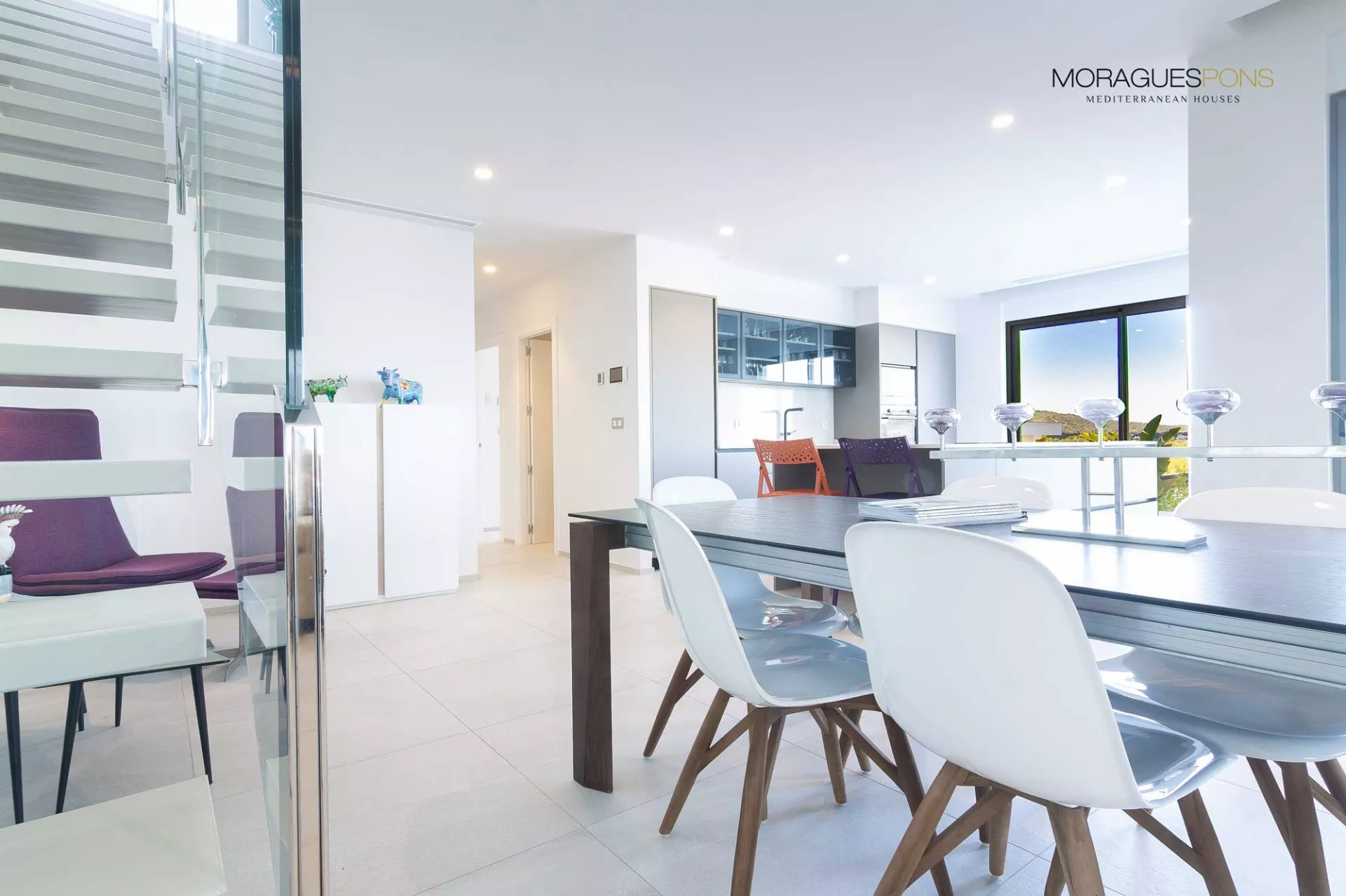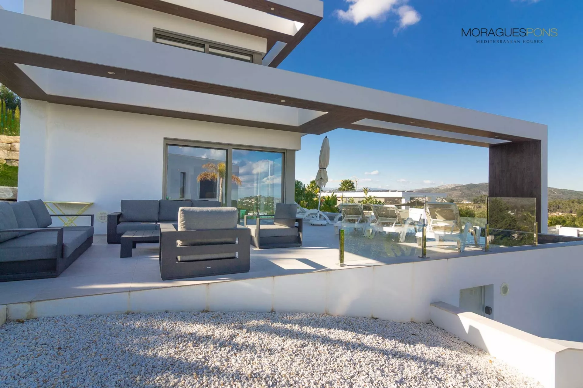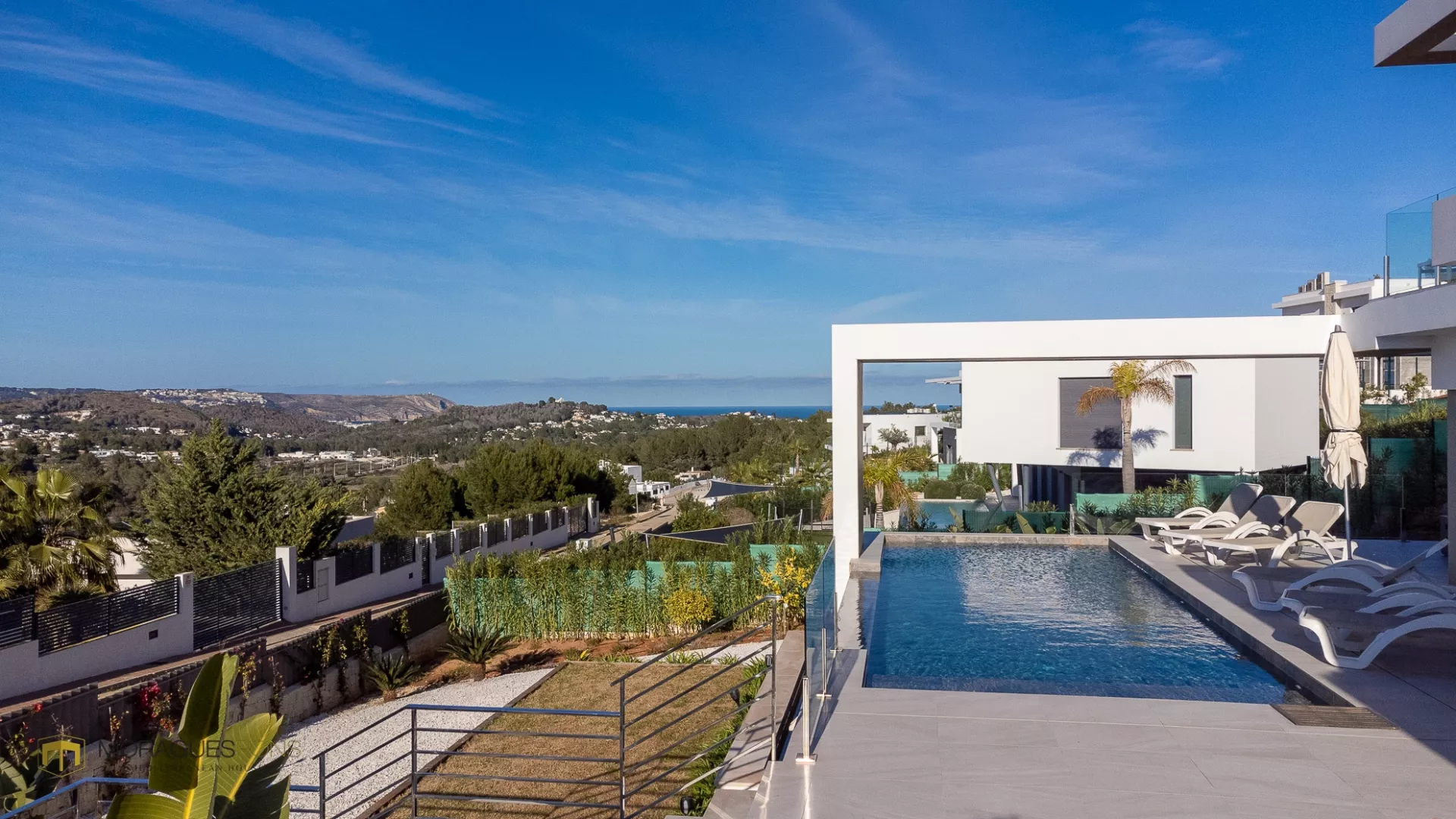 Dit moderne huis ligt in het wooncomplex Villes al Vent, in Jávea. Het huis is gebouwd in 2023 door een bekende bouwer, heeft 225 m² en ligt op een perceel van 1022 m².