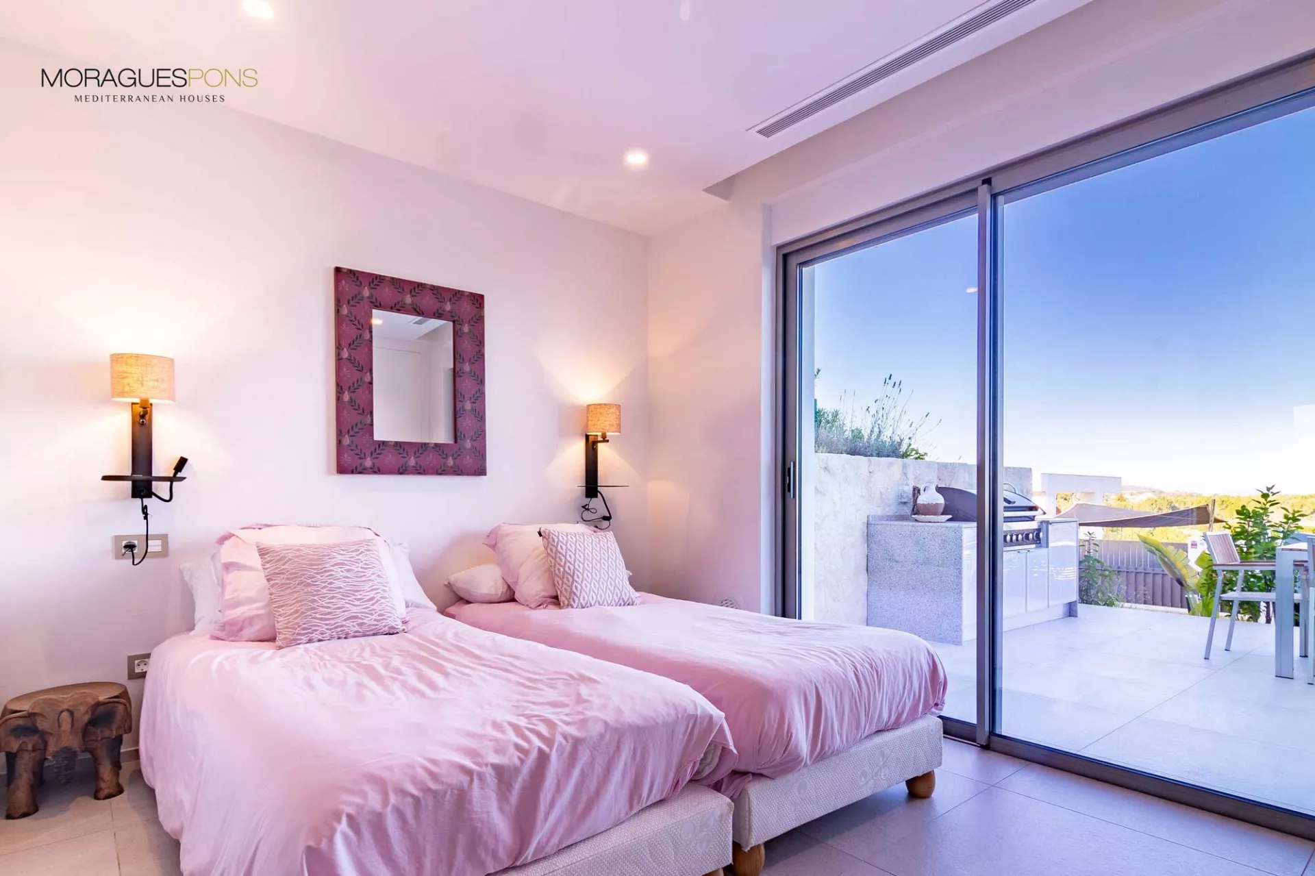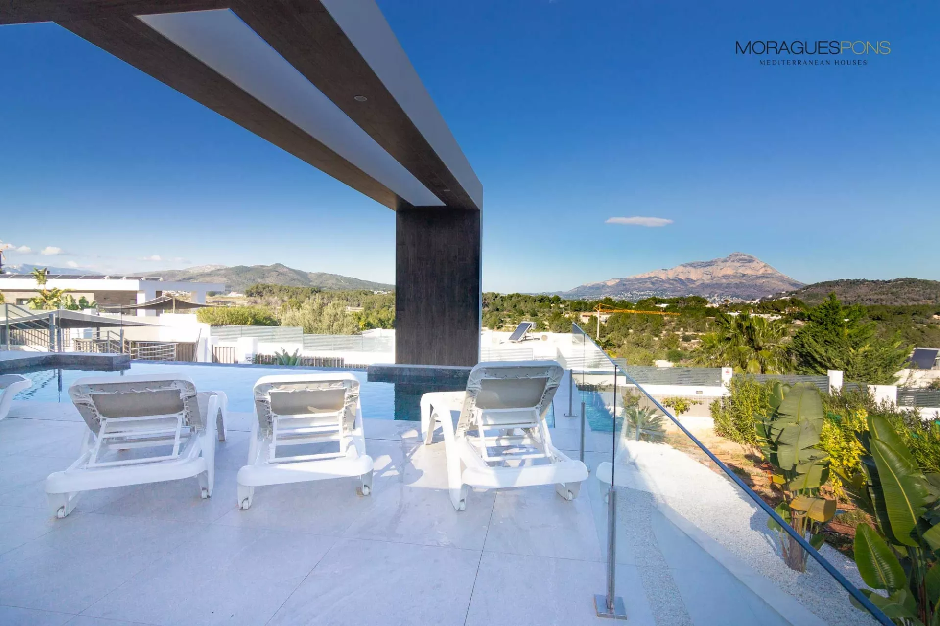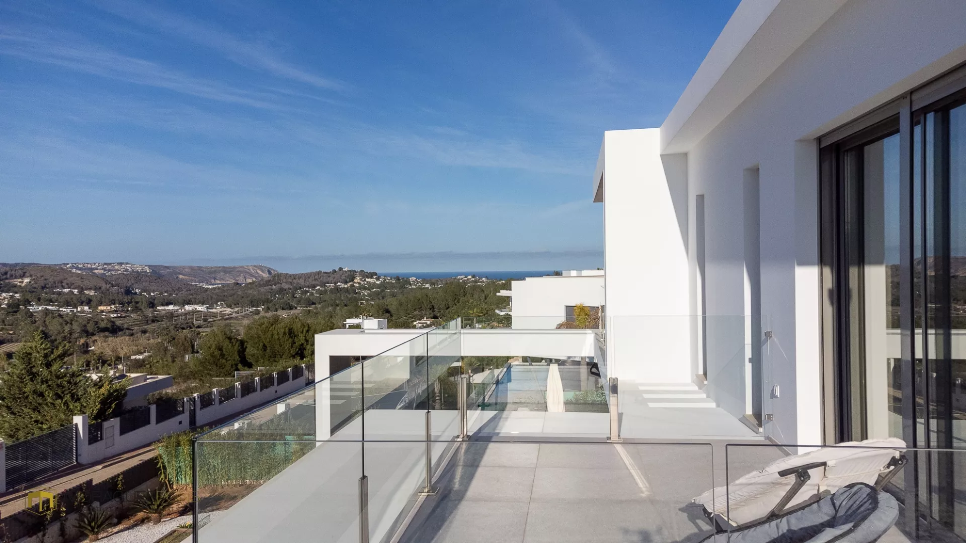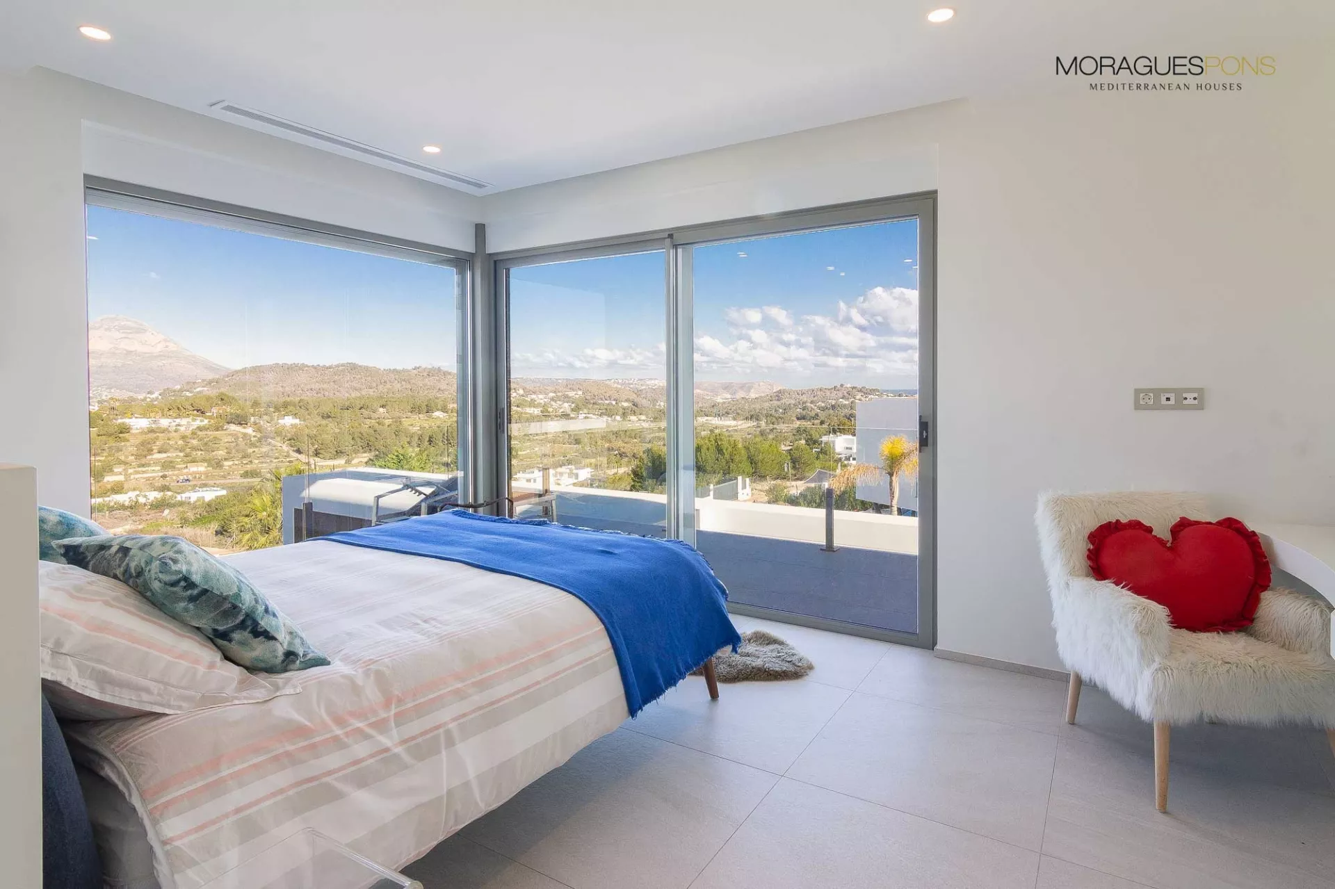 Op de bovenverdieping vinden we de andere twee slaapkamers met hun terrassen, die een prachtig uitzicht bieden op de Montgó en ver uitzicht op zee.