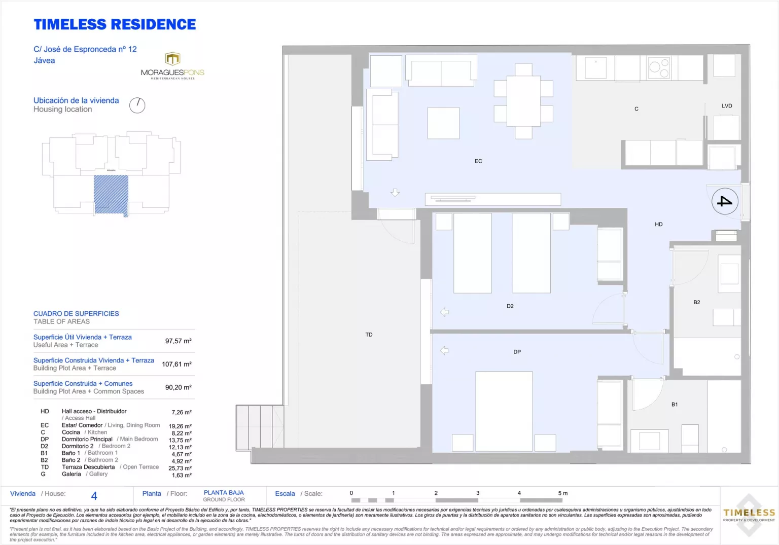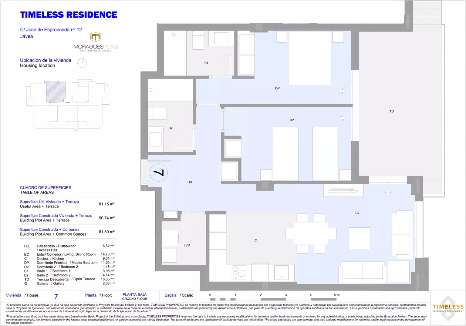 The TimeLess Residence heeft in totaal 17 woningen die als volgt zijn verdeeld: zeven woningen op de begane grond met privéterrassen en individuele toegang vanuit de tuin, zeven woningen op de eerste verdieping en drie penthouses met solarium. De gemeenschappelijke ruimtes zijn perfect ontworpen om de eigenaar een gevoel van privacy, kwaliteit en rust te geven. Details in droge steen met de hand uitgehouwen, autochtone planten, kinderruimtes.