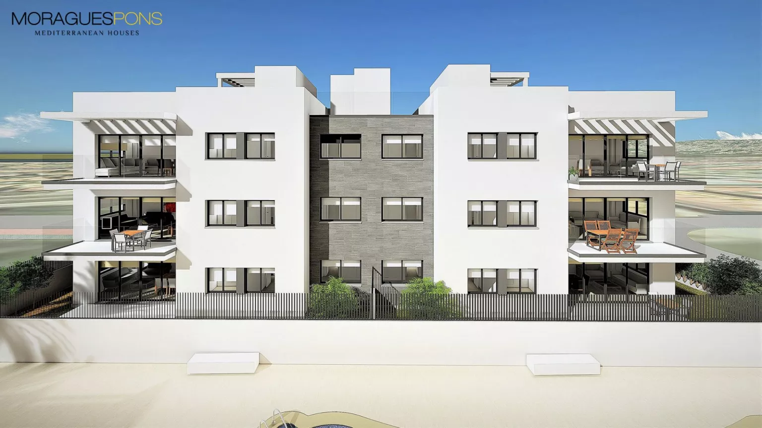 Residencial Tenis situado a escasos cinco minutos andando a la playa del Arenal está compuesto por 24 apartamentos de dos y tres dormitorios con ajardinadas zonas comunes con piscina y planta sótano con plazas de parking y trasteros.