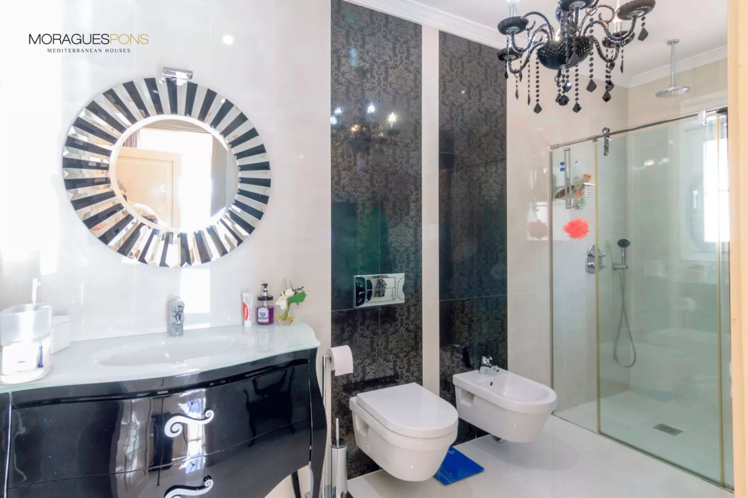 Esta no es solo una casa magnífica , es una casa en la que cada detalle ha sido pensada por sus actuales propietarios para facilitar el día a día , en la planta baja encontramos dos dormitorios amplios ( uno de ellos con baño ensuite) que tienen salida directa al fabuloso jardín y a sus terrazas . A parte, claro está, de un salón amplio con zona de comedor abierta y una cocina que hará las delicias de cualquier chef.