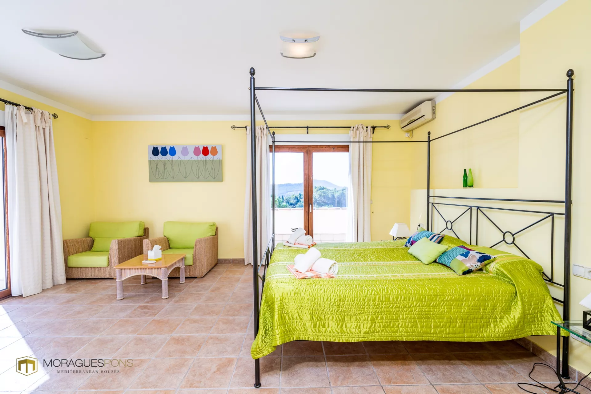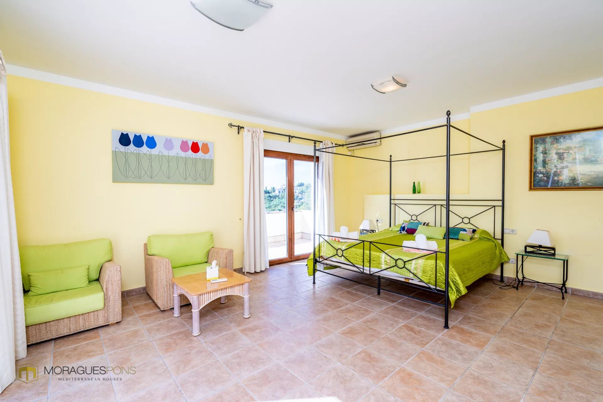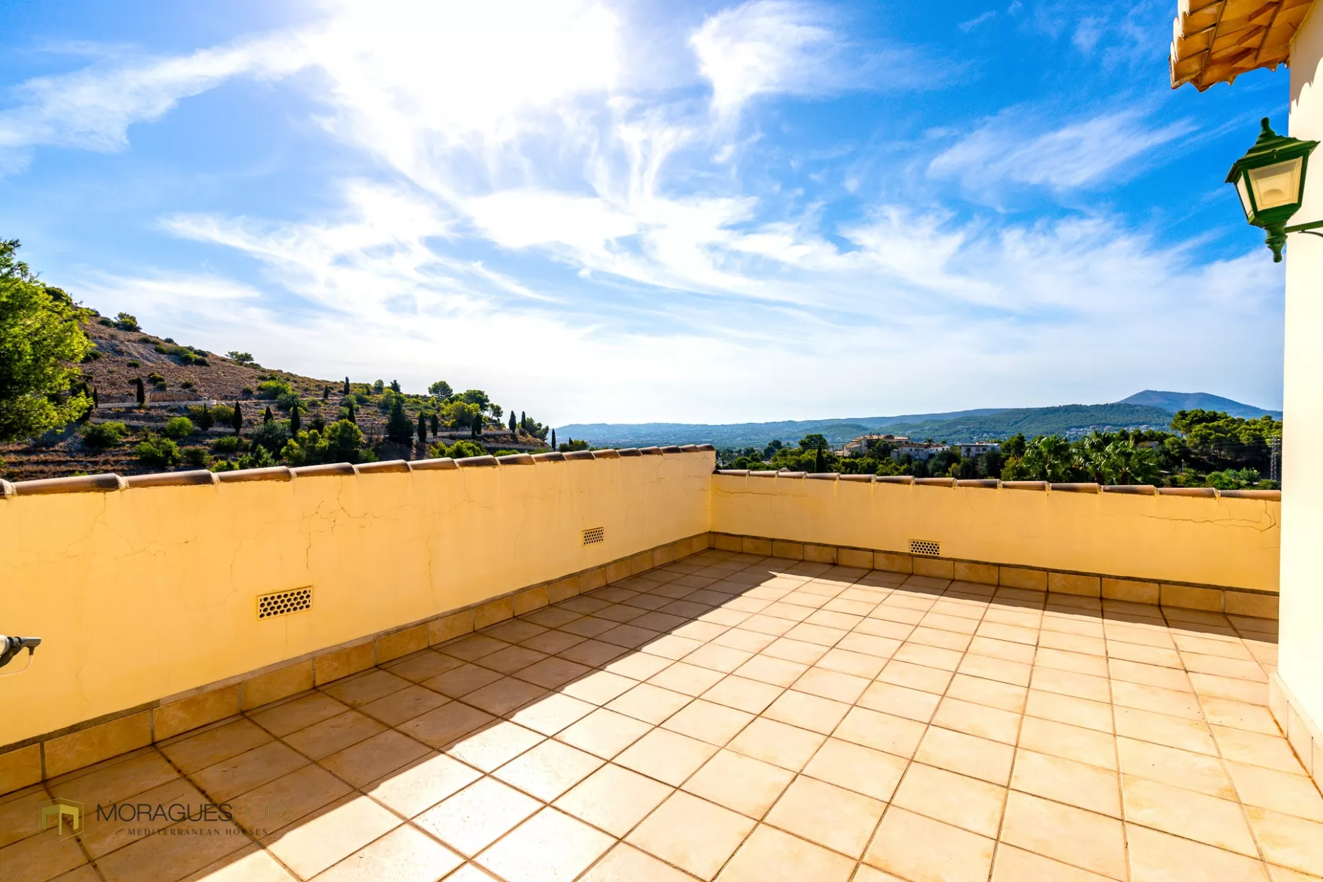 De bovenverdieping van het pand is toegankelijk via de marmeren trap vanuit de entreehal, die leidt naar de grote ouderslaapkamer met en-suite badkamer en een privéterras met fantastisch open uitzicht. Op dit niveau is er ook nog een slaapkamer en badkamer.